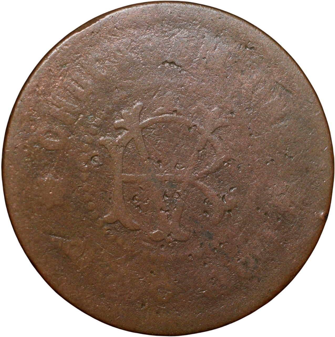 Travancore State, Rama Varma VI, (AD 1885-1924), Copper Chukram, Obv: ‘RV’ Monogram for Rama Varma & Denomination Inscribed in dual Languages ‘Chukram One’, Rev: Counch, (KM 43), About Fine, Rare Variety.