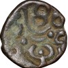 Vijayanagara Empire, Sangama Dynasty, Devaraya I (1406-1422 AD), Copper Unit, Obv: In circle of dots, humped bull to left with crescent moon & sun above, Rev: In circle of dots; in three lines Sri De Va/A dagger between conch and discuss/ra ya, 1.38 Gms, 11.88 mm, About Very Fine, Scarce.