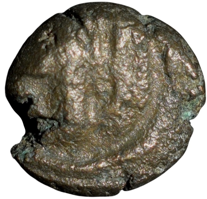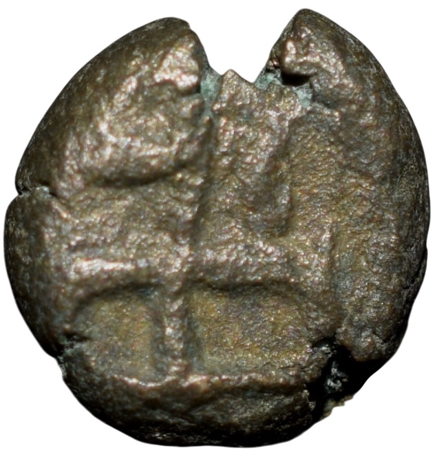 Gingee Maratha’s, (17th Cen. A.D.), Copper Unit, Obv: Un-Known Animal Motif, Rev: Dagger flanked by Nagari legend ‘Rama/Rama’, 0.86 Gms, 5.91 mm, About Very Fine, Rare.