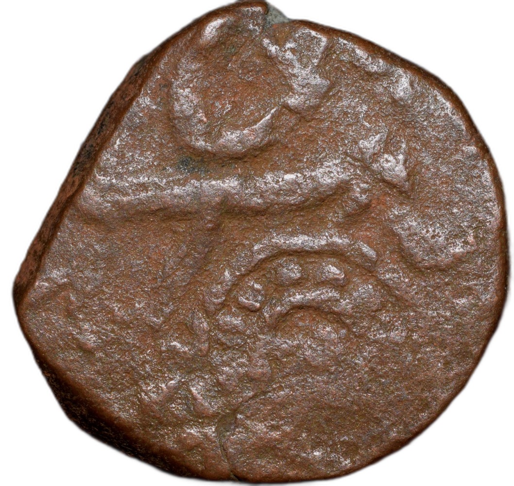 Ratlam State, ‘Raej’ Issue, (18th Cen. AD), Copper Paisa, Obv: Persian Inscription, Beaded Flower Mint Mark & Nagari ‘Ra’ for Ratlam, Rev: Persian Inscription, within decorative dotted circle persian ‘Raej’, 9.18 Gms, 20.77 mm, About Very Fine, Rare.