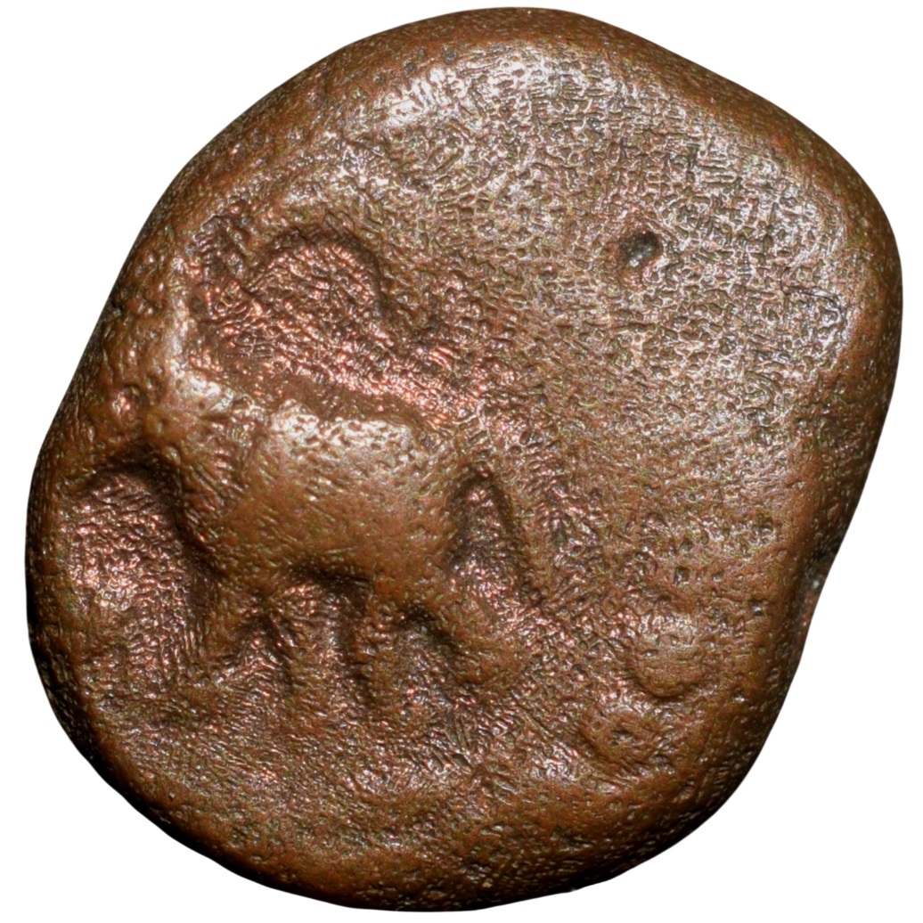 Copper Kasu of Maysore Numerical Series (17th – 18th Cen. AD) with Elephant left KM152