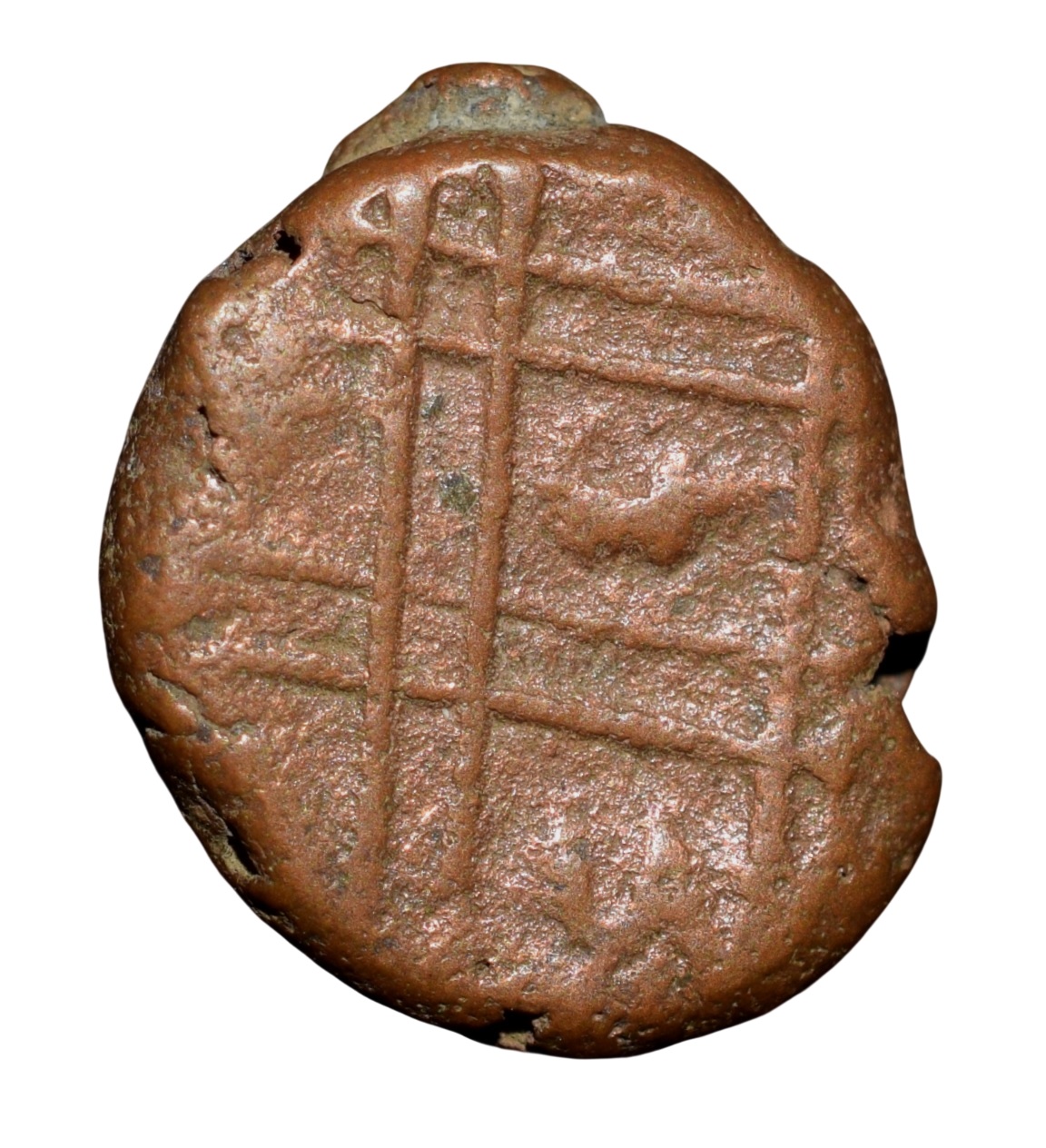 Mysore State, (17th – 18th Cen. AD), Anonymous Issue, Copper Kasu, Obv: Garuda left in Virasana facing front, Rev. Cross lines with perhaps Kannada Numerals, 3.04 Gms, (KM 158), About Extremely Fine, Rare.