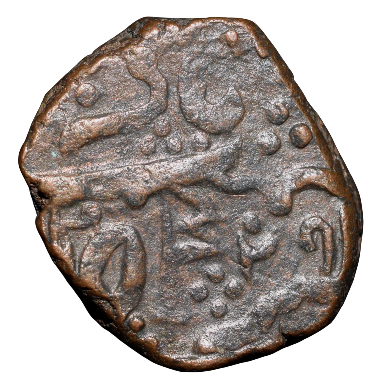 Copper Paisa of Bhonsala Raja’s of Nagpur(AD 1759-1806) with Zaripatka Double Leaf Flag Ty.104.1