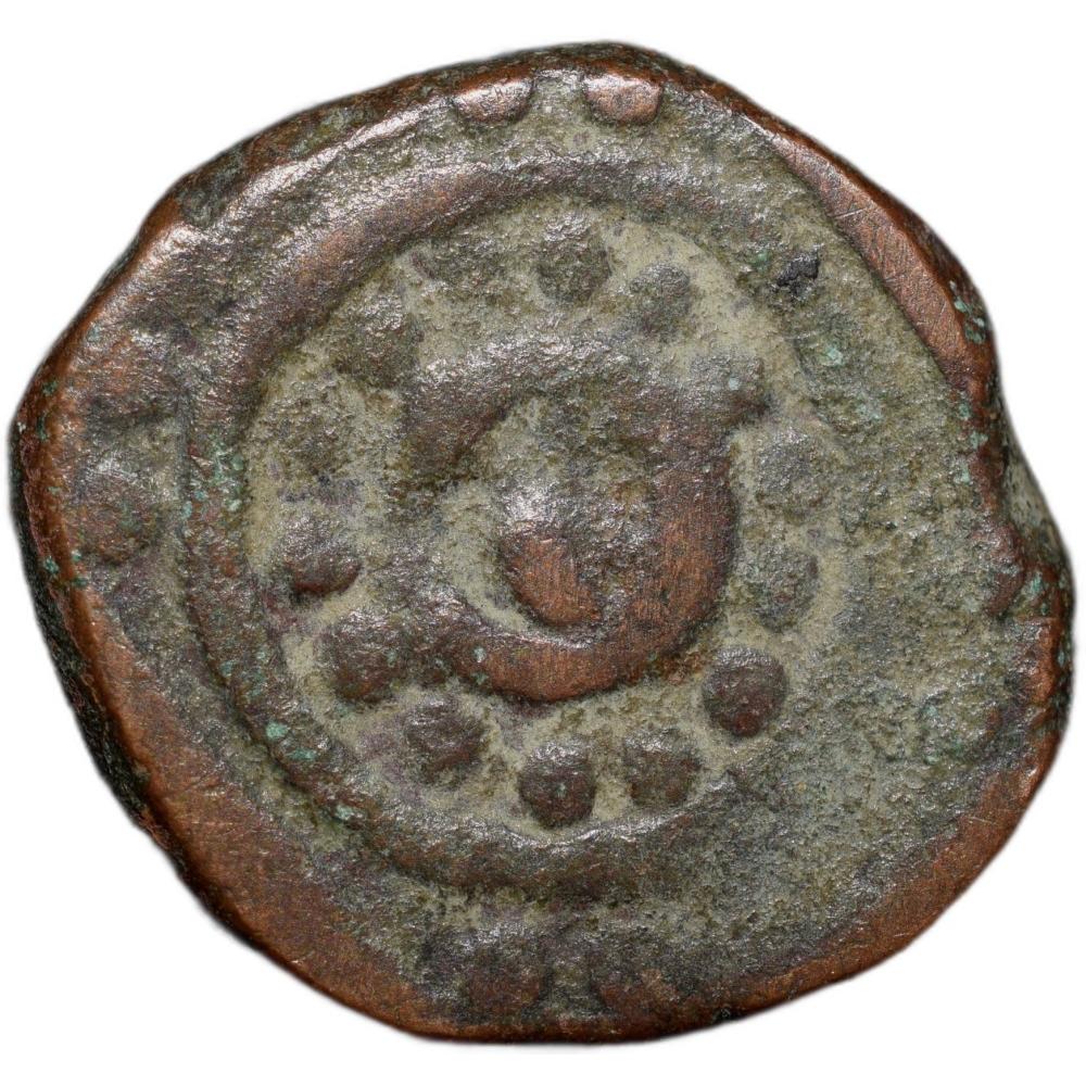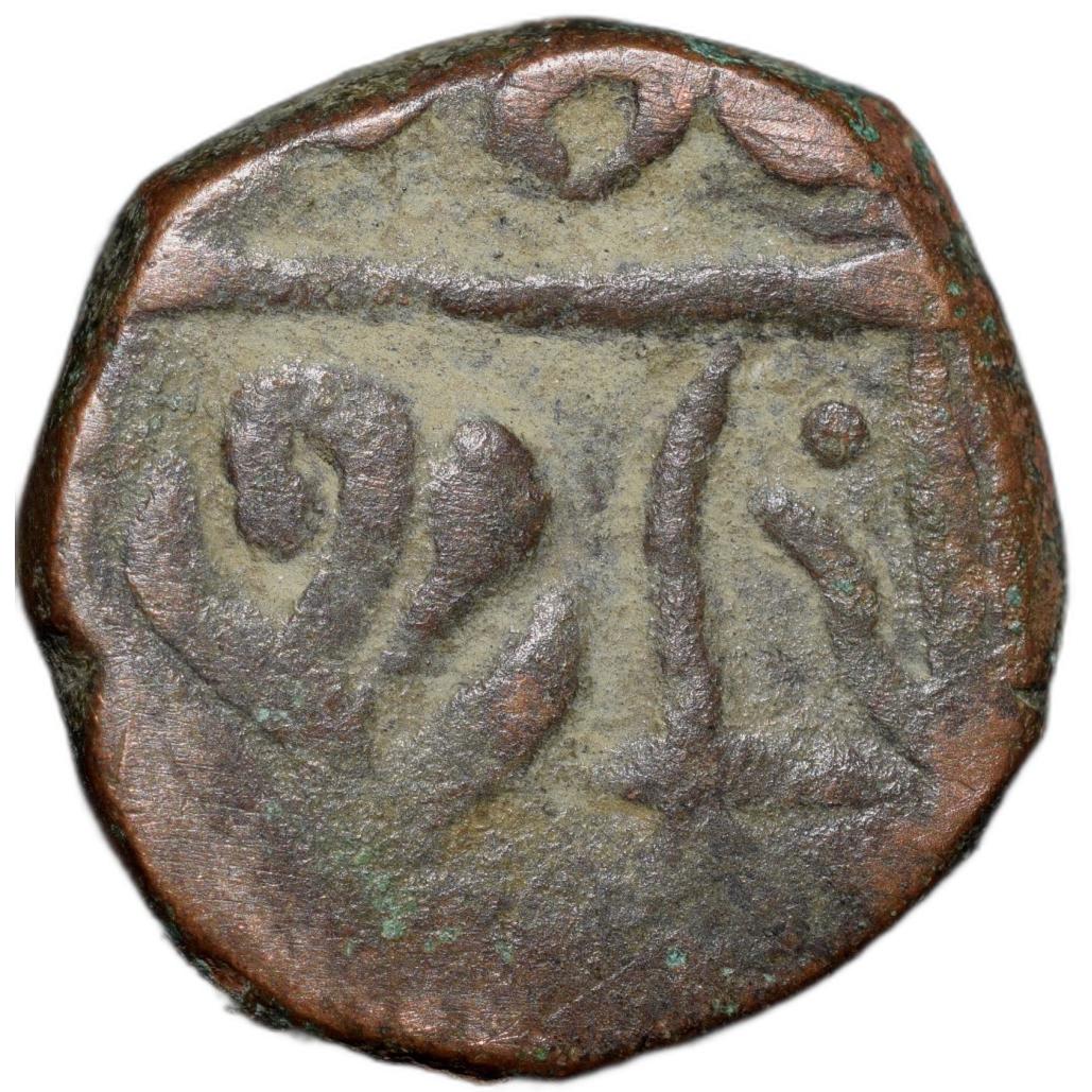 Copper Paisa of Dhar State(17th – 18th Cen. AD) Anonymous Type Jhar, Scimitar & Trishul/Dotted Circl