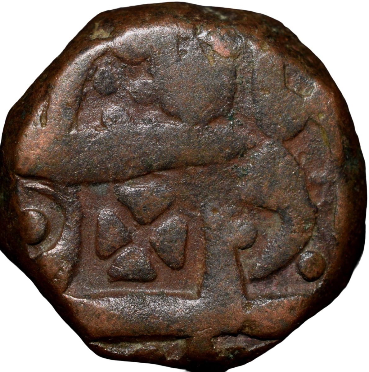 Jaipur State, INO Shah Alam II, (AD 1759-1806), Copper Paisa, Obv: Jhar mint mark, traces of persian legends, Rev: Persian legends, Squarish Mint Mark, 17.68 Gms, 20.44 mm, (KM29), About Very Fine, Scarce.