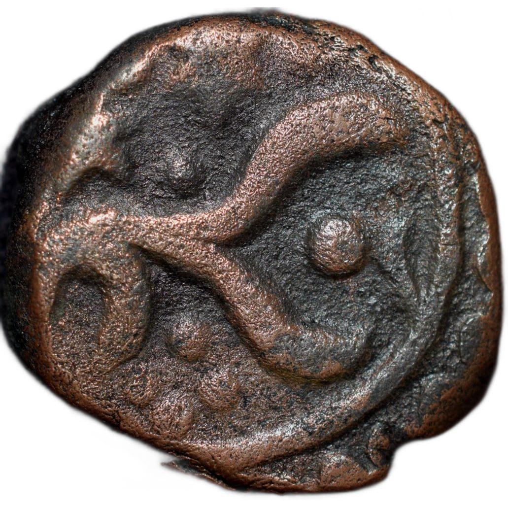 Gwalior State, (17th – 18th Cen. AD), Anonymous Issue, Copper Paisa, Obv: Spear left above (Scimitar), Rev: A typical Jawad mint design with Star & Floral bud mint mark, (KM # 101), 8.82 Gms, 17.92 mm, Extremely Fine, Scarce.