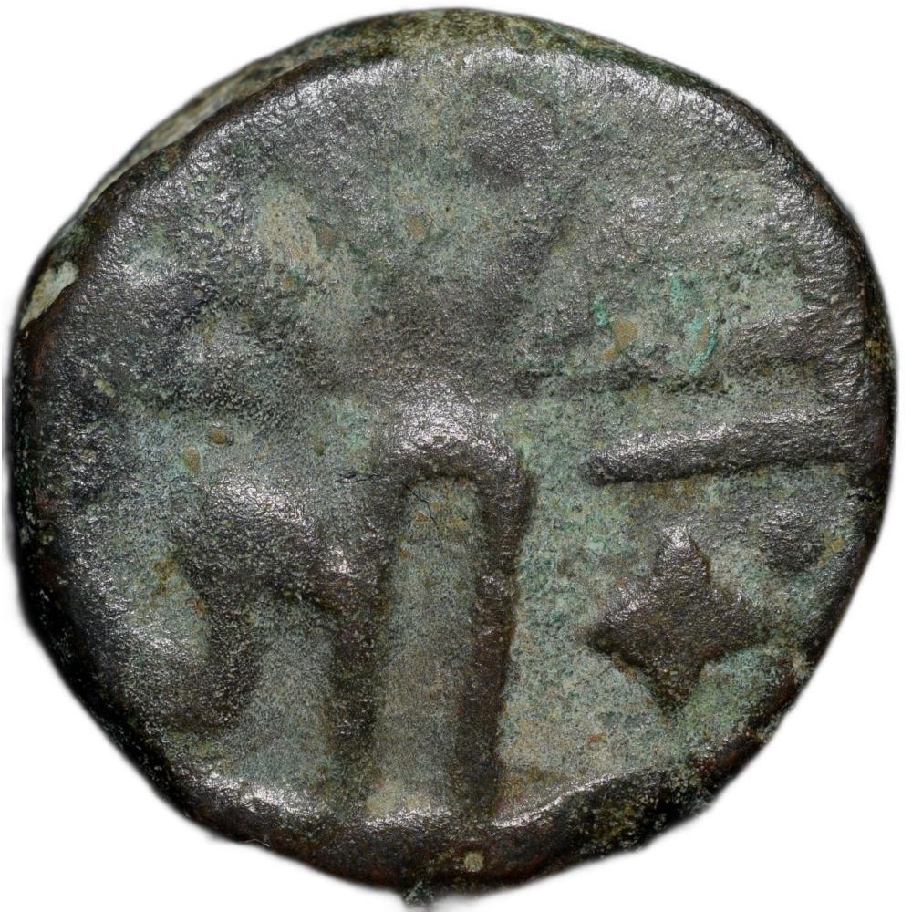 Gwalior State, Jayaji Rao, (AH1259-1304/1843-1886AD), Copper Paisa, Mandsore Mint, Obv: Nagari ‘Sa Ma Sa’ with Nagri ‘Ji’ in Centre, Rev: Trishul in Centre, Nagari legends ‘Alijah Bahadur’, 7.40 Gms, 16.31 mm, (KM 180), About Very Fine, Scarce.