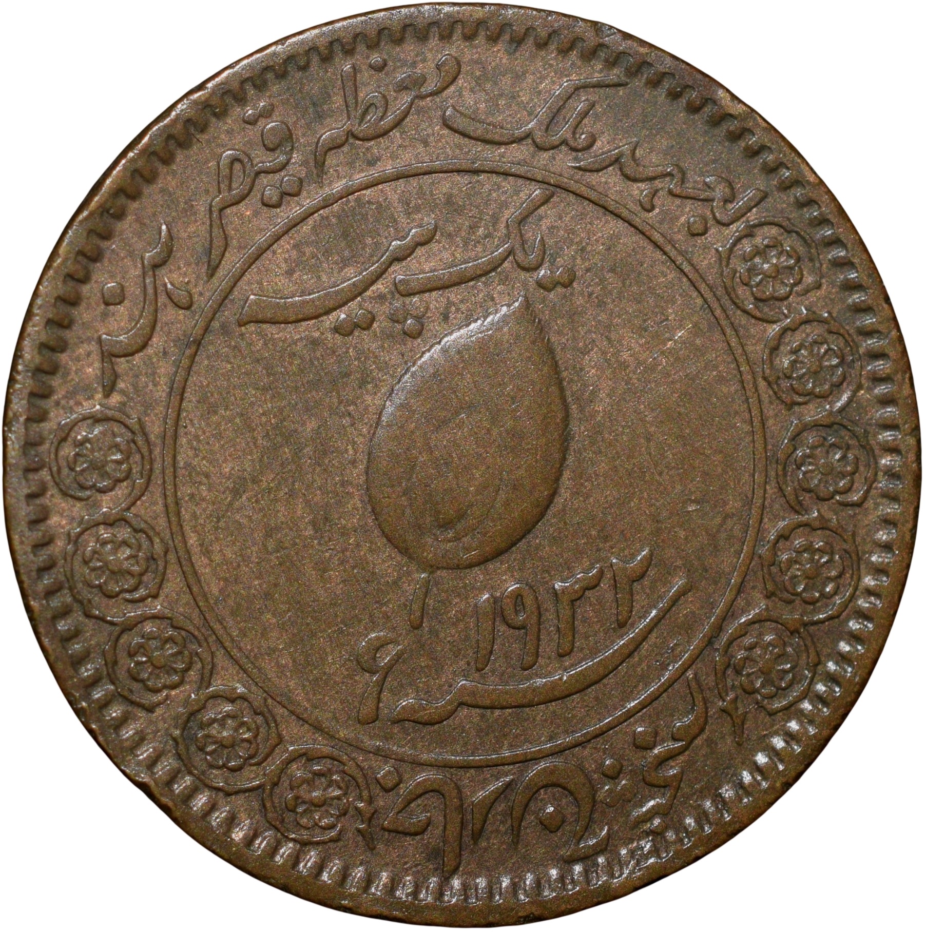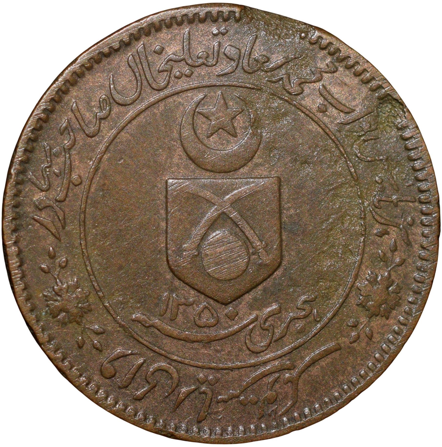 Tonk State, Muhammad Sa’adat Ali Khan (AH1349-1368/1930-1949AD), Copper Pice/Paisa, Obv: Persian Inscription, Date, Shield & Emblem, Rev: Leaf in Centre, Persian Inscription, Date & Denomination, 4.79 Gms, 21.11mm, (KM # 29a), Small Flan Type, Very Fine, Scarce.
