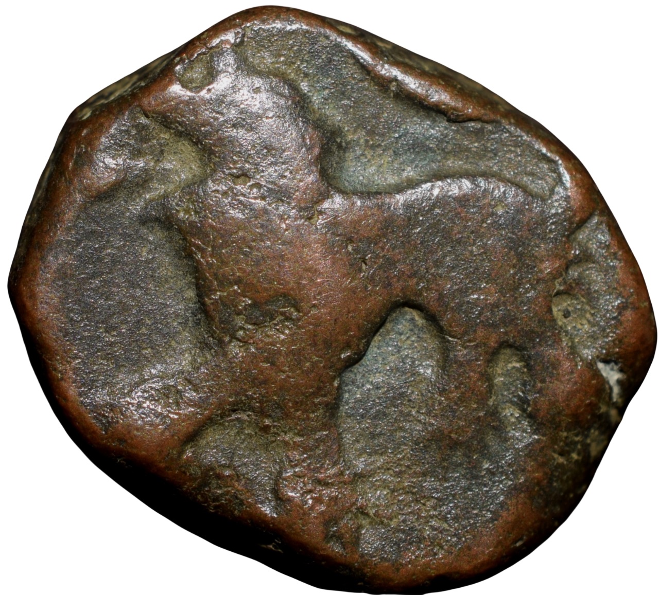Hyderabad Feudatory – Elichpur, Namdar Khan(17th – 18th Cen. AD), Copper Paisa, Obv: Tiger with upraised tail facing to left, Rev: Mint name ‘Murtizapur’ in Retrograde, 10.33gms, 16.13 x 16.60mm, (Unlisted not in KM), Very Fine, Extremely Rare.