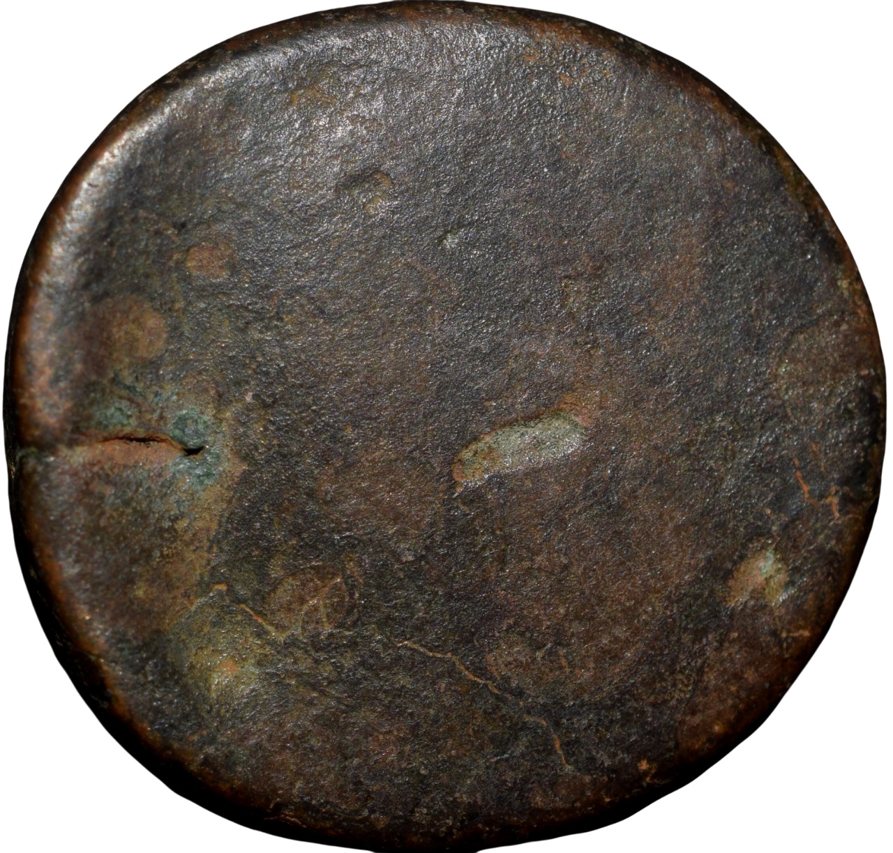 Bhopal State, Nawab Jahangir Muhammad Khan, (AD 1837-1844), Copper Paisa, Struck Pindhari Type, Obv: Persian ‘Sikka Bhopal’ & Date Top (AH1255) all within in circular depressed area, Rev: Uniface, 14.70 Gms, 19.71 mm, (KM # C 21a), About Fine, Rare.