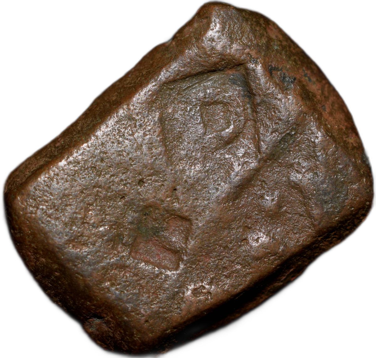 Copper Paisa of Porbandar State (17th – 18th Cen. AD) with P for Porbandar Counter Mark