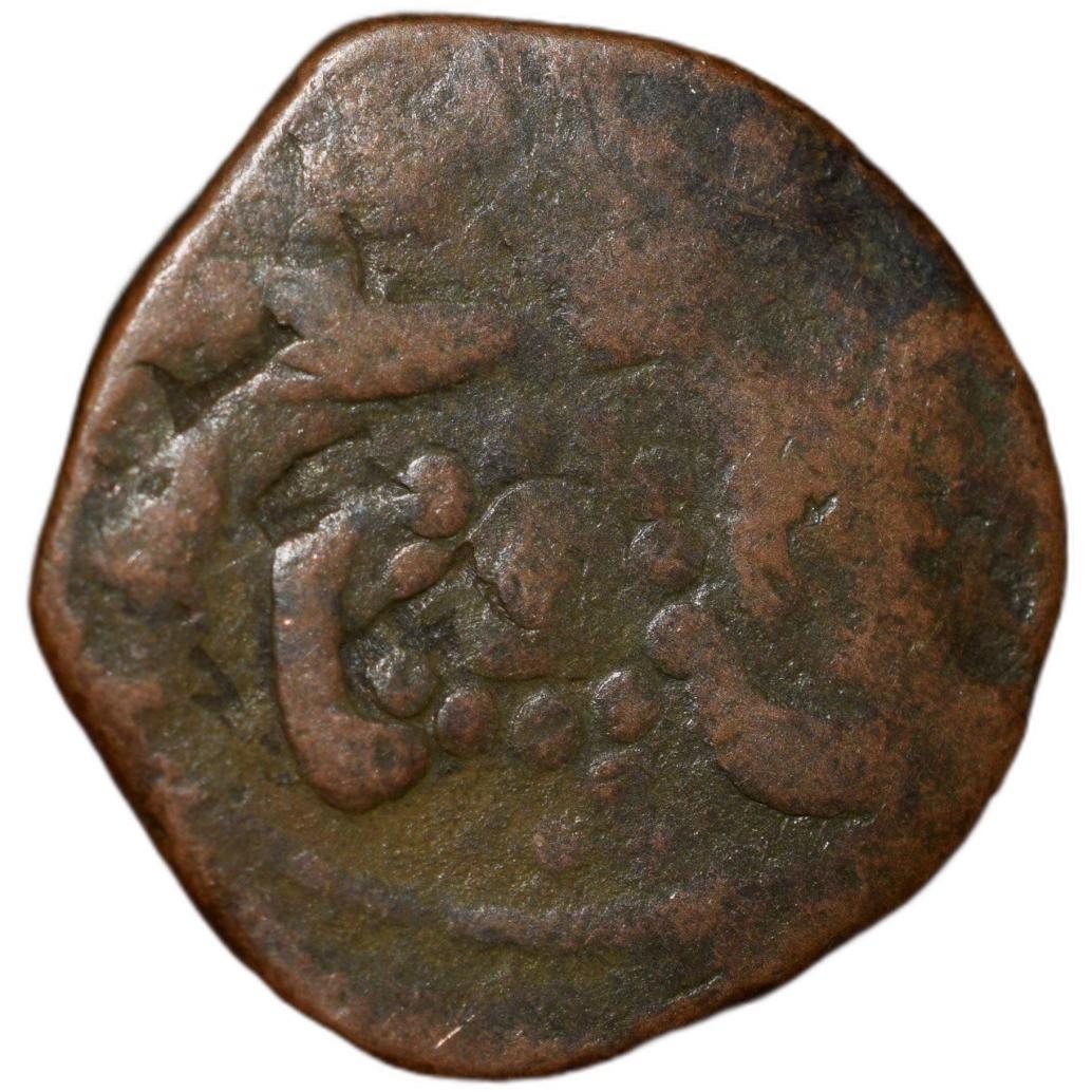 Bhonsala Raja’s of Nagpur, Rughuji III (AH1233-1270/1818-1853AD), Copper Paisa, Obv: Ahmad Shah, Crescent Mint Mark, Rev: Dotted Circular Mint Mark, 16.54 Gms, 22.83 mm, (PP Kulkarni Type 23.2), About Fine, Rare.