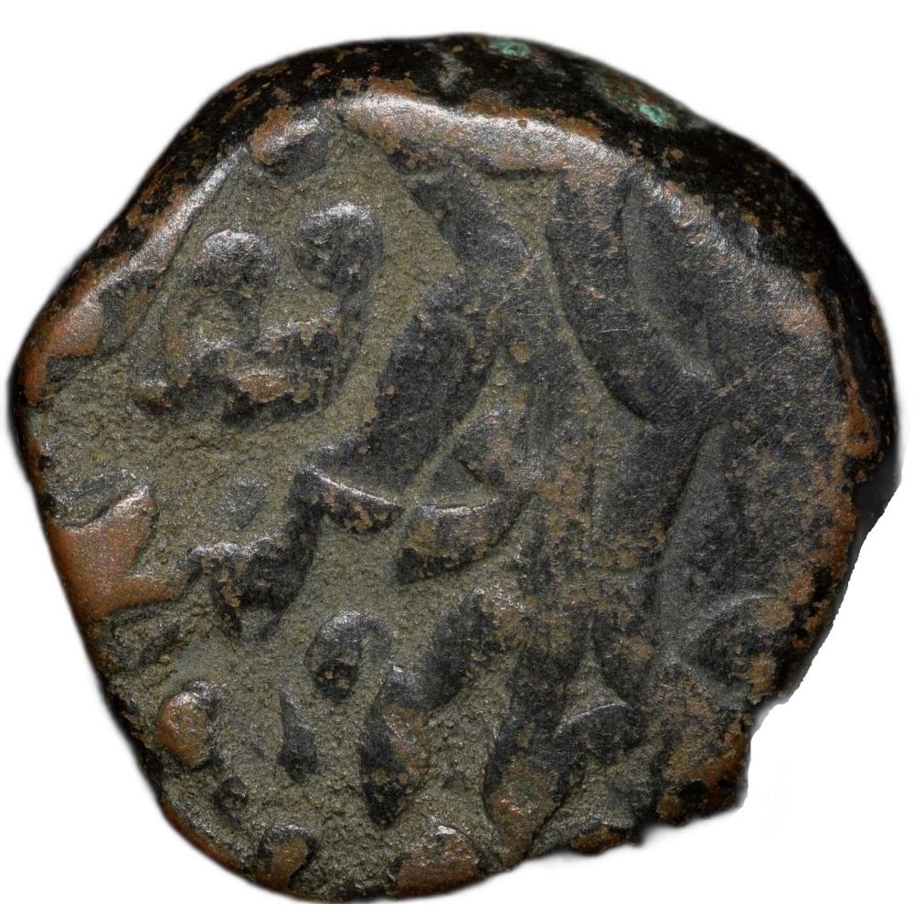 Jodhpur State, Bhim Singh, (AH1207-1218/1792-1803AD), Copper Takka(2 Paisa), Jodhpur Mint, Obv: Mint Name in Persian, Partly visible date, Rev: zarb manus maimanat sanah julus, 21.02 Gms, 19.84 mm, (KM 12.2), Double-Struck, About Very Fine, Scarce.
