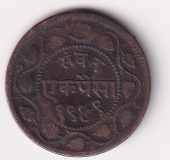 Indian princely states › Baroda, 1 Paisa (1884-1893) – Sayaji Rao III Rare Coin # D -25
