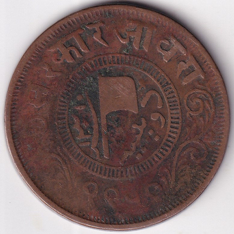 Jaora State Two Paisa 1893 Copper 31 mm Ex Rare Coin