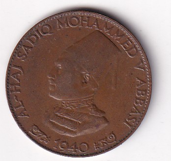 Bust of Sadiq Mohammed Khan V left, legend in English surrounds, AD date below
