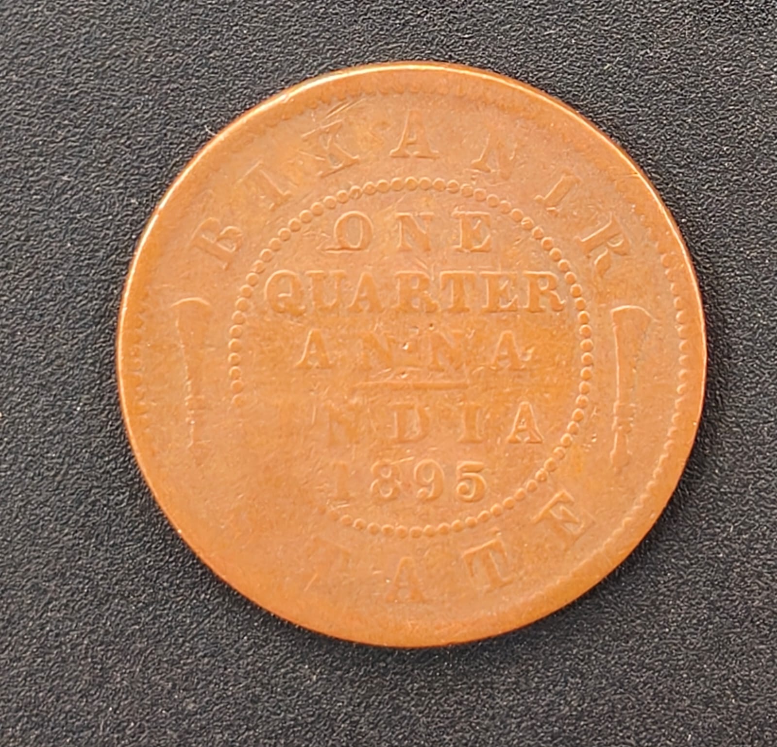 Princely state of (Bikanir) ¼ Anna 1895 Victoria Rare Coin #Z-188