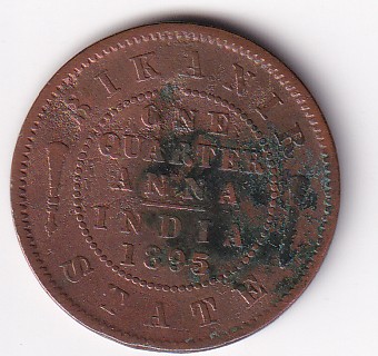 Princely state of (Bikanir) ¼ Anna 1895 Victoria Rare Coin #Z-189