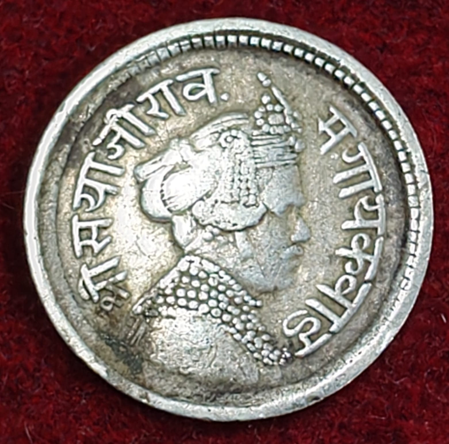 RARE 2 ANNAS SIYAJI RAO III , PRIENCLY STATE OF BARODA, 1949 (1892) SILVER COIN #7474
