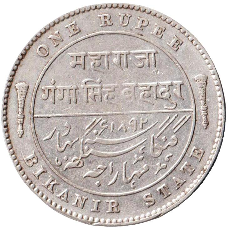 Rare One Rupee Coin Of Maharaja Ganga Singh Bahadur Bikanir State Victoria Empress