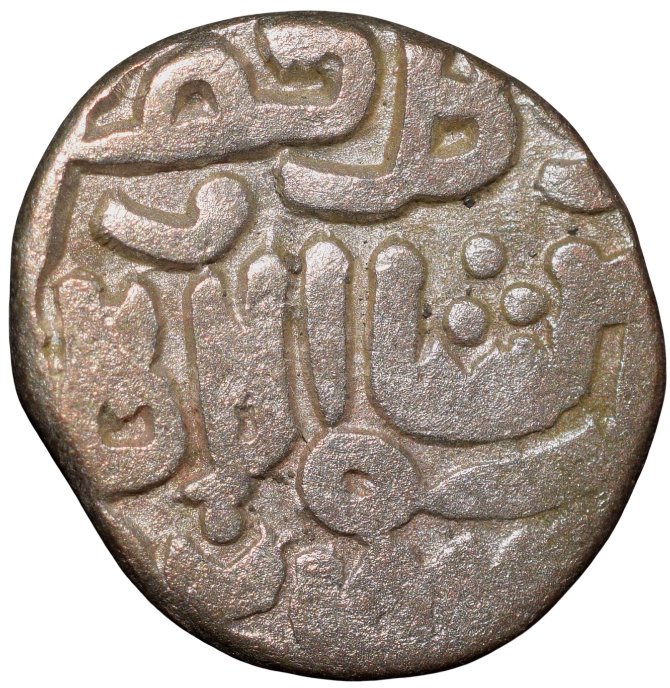 Delhi Sultanate, Qutb al-din Mubarak (AH 716-720/1316-1320 AD), Billion 4 Gani, Obv: al-imam al-a ‘zam qutb al-dunya wa’l din, Rev: abu ‘l muzaffar mubarakshah al-sultan ibn al-sultan, 3.59gms, 14.28mm, (G&G # D275), Very Fine, Scarce.