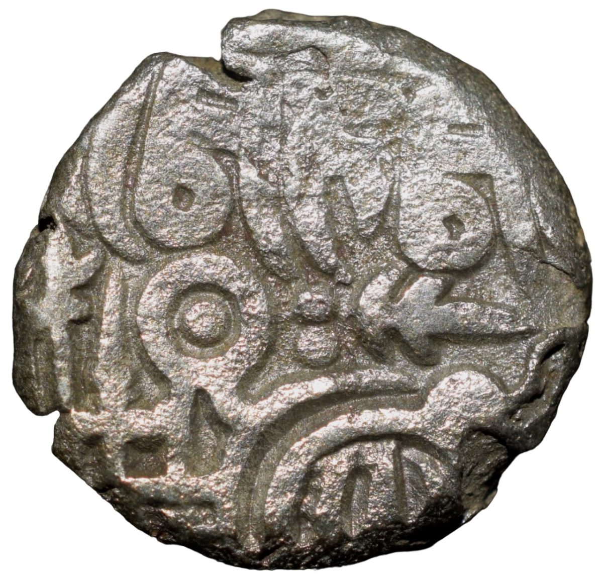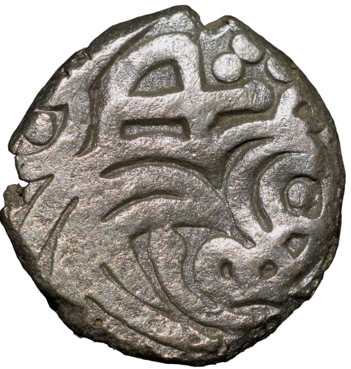 Delhi Sultanate, Muhammad bin Sam (AH 589-602/1193-1206 AD), Billion Jital, Obv: Stylised bull facing left, ‘Sri mahamada sama in Nagari above, Rev: Stylised Horseman, 3.17gms, 12.89mm, (G&G D7), Very Fine, Scarce.