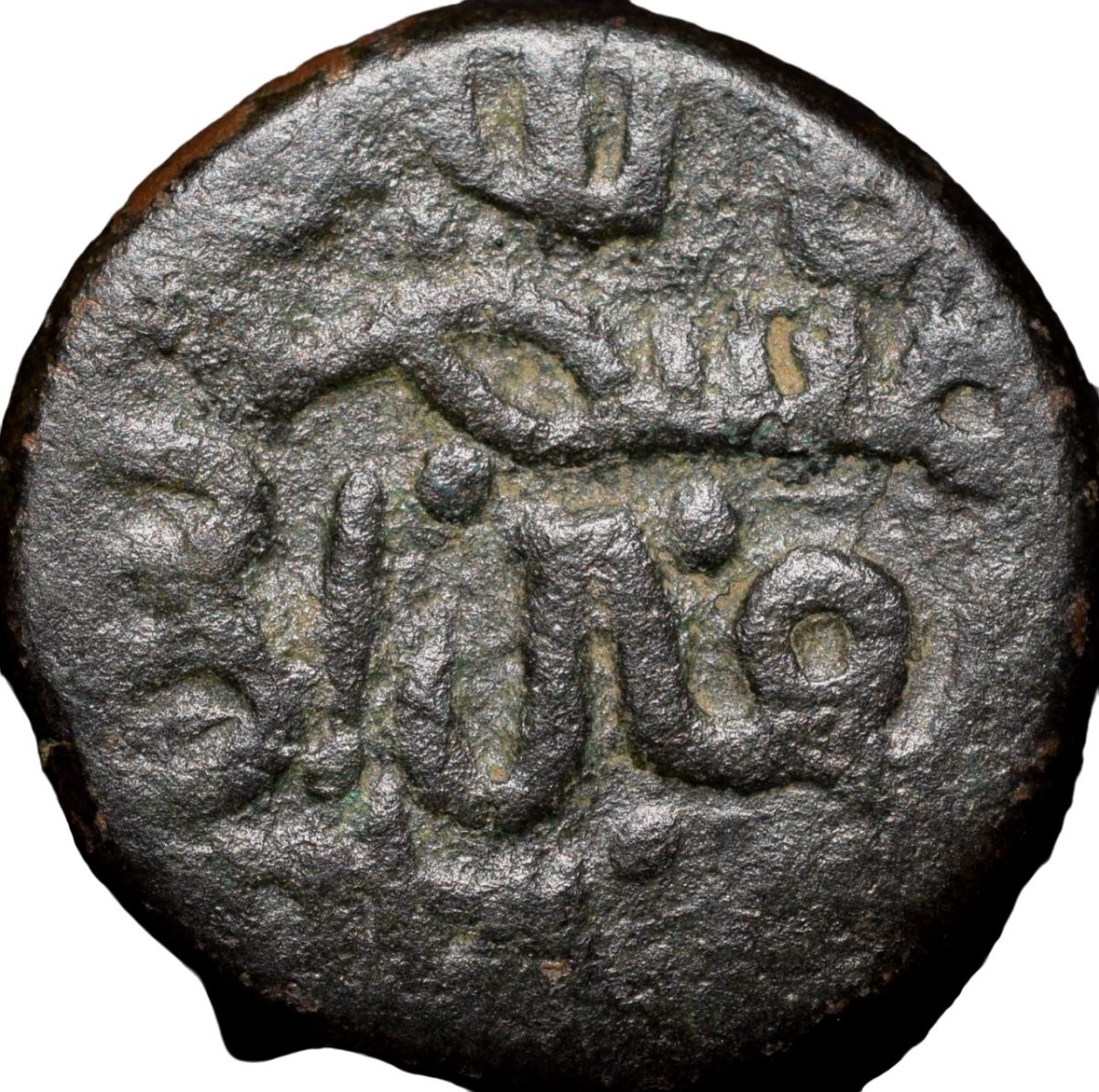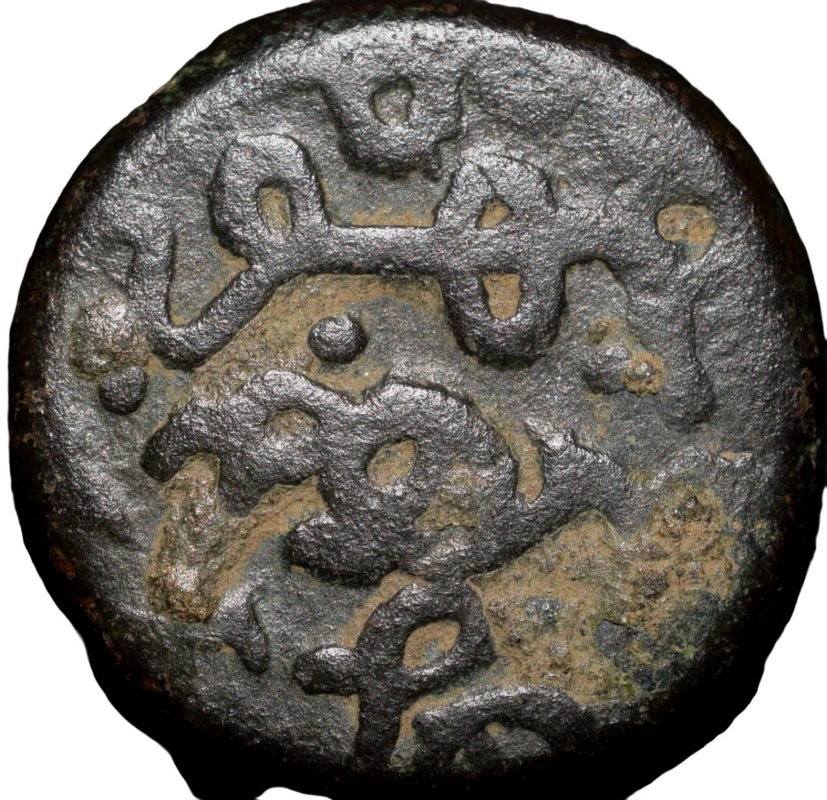 Bahamani, Ala-al-din Ahmad Shah II (AH 838-862/1435-1457 AD), Copper 1/3 Gani, Obv: al-mustansir billah al-ghani abu ‘l muzaffar(He who seeks aid from God, the rich etc), Rev: ahmad shah bin ahmad shah al-bahamani, 5.34 Gms, 14.77 mm, (Similar to G&G # BH 88 but with different legends arrangemet), About Extremely Fine, Rare.