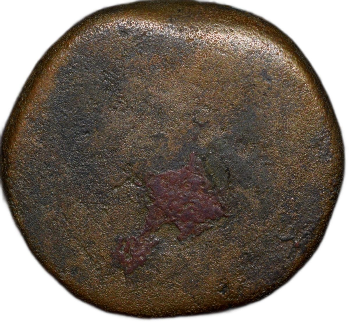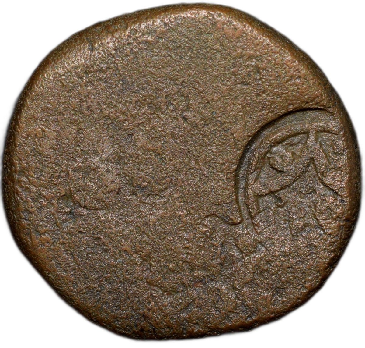 Bidar Sultanate, Amir Barid I (AH910-949/1504-1542AD), Copper 2/3 Gani, Counter marked with persian legends on Bahamani Coin with Circular impact, (Rajgor 602), 9.55 Gms, 19.11 mm, Very Fine, Very Rare.
