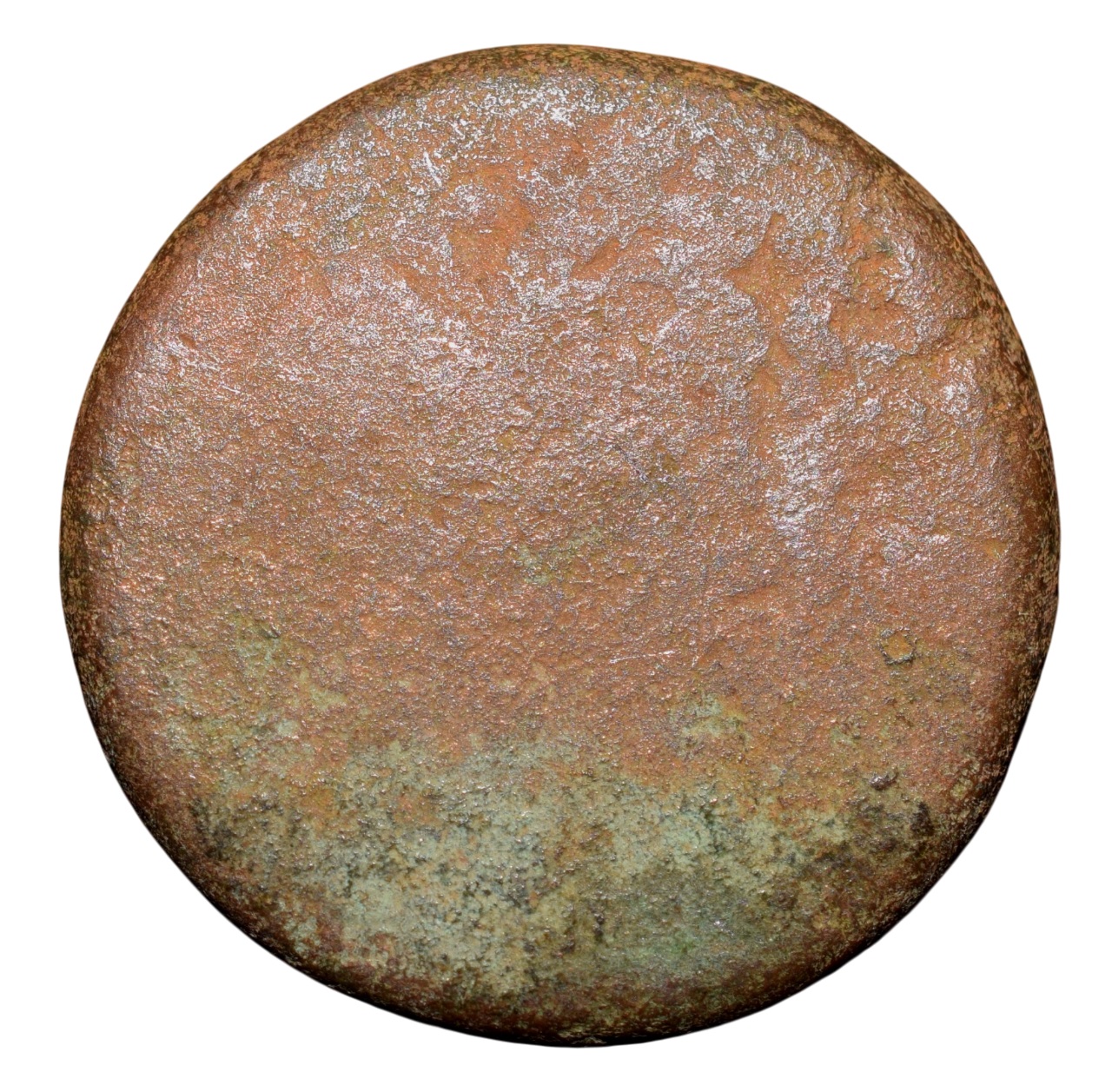 Bidar Sultanate, Amir Barid I (AH910-949/1504-1542AD), Copper 2/3 Gani, Counter marked with persian legends on Bahamani Coin with Circular impact, (Rajgor 602), 9.68 Gms, 19.11 mm, Very Fine, Very Rare.