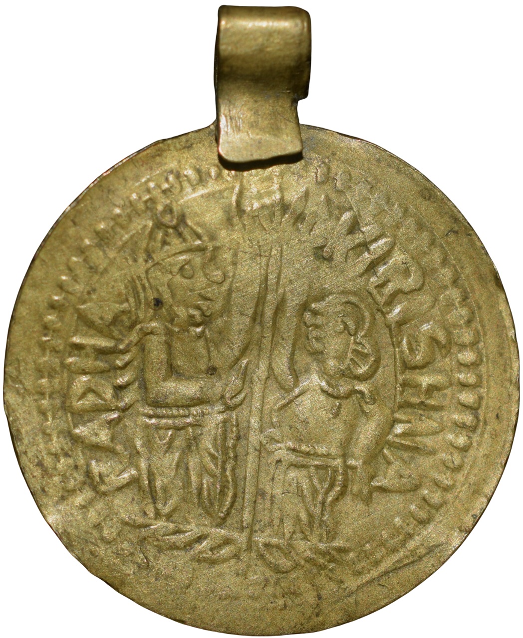 Brass Temple Token Imitation Venetian Coins from Saurashatra (19th Cen.AD) with ‘Radha Krishan’ Inscription