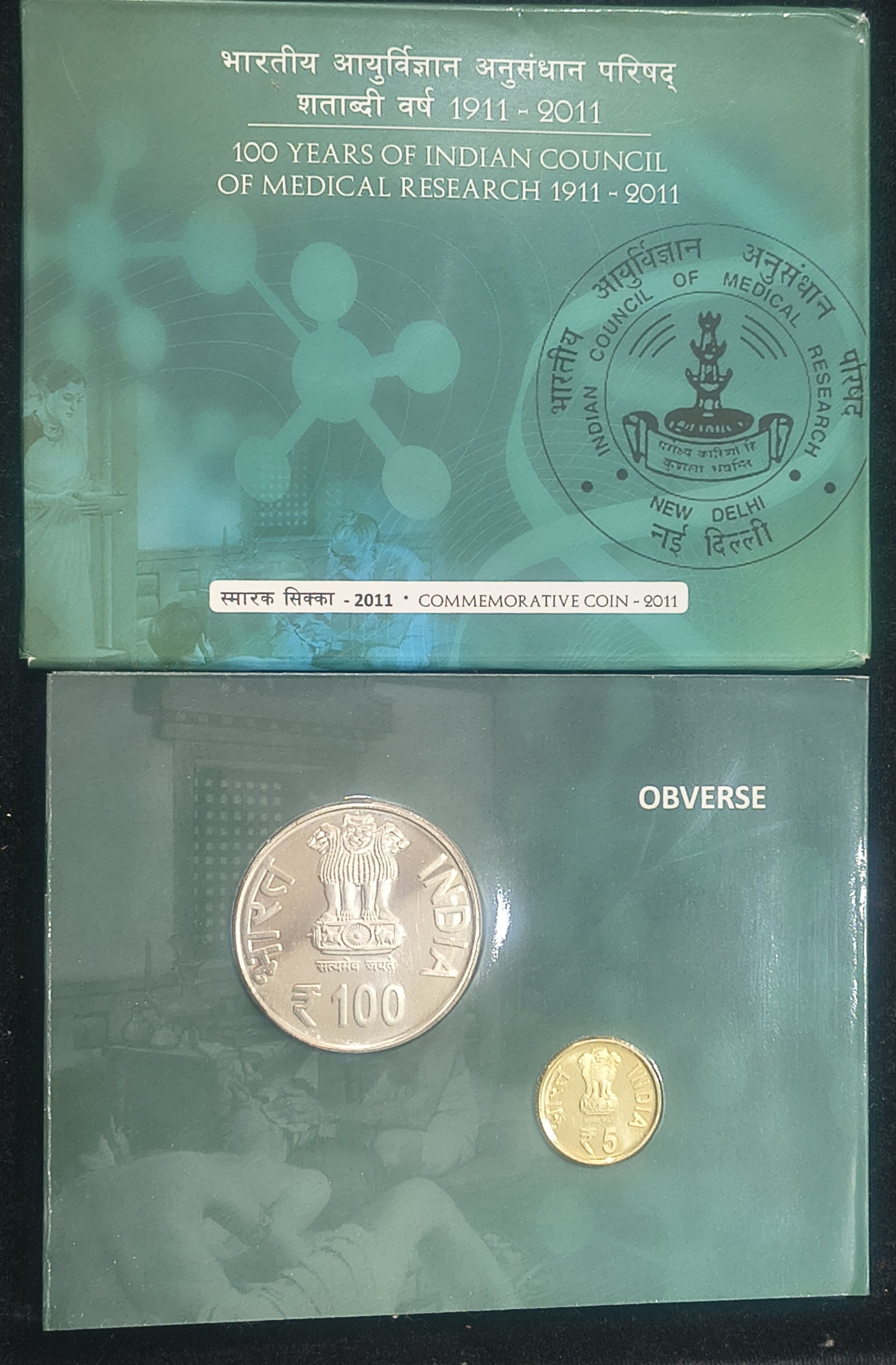100 years of Indian Council of Medical Research – (1911 – 2011 ) Hyderabad Mint 2 coins ((UNC SET))