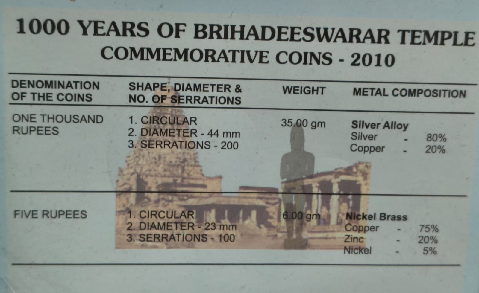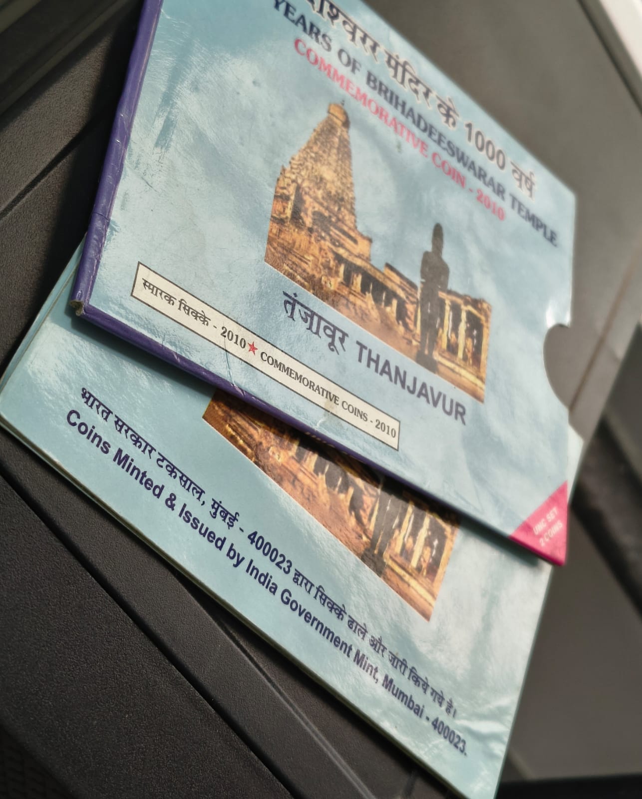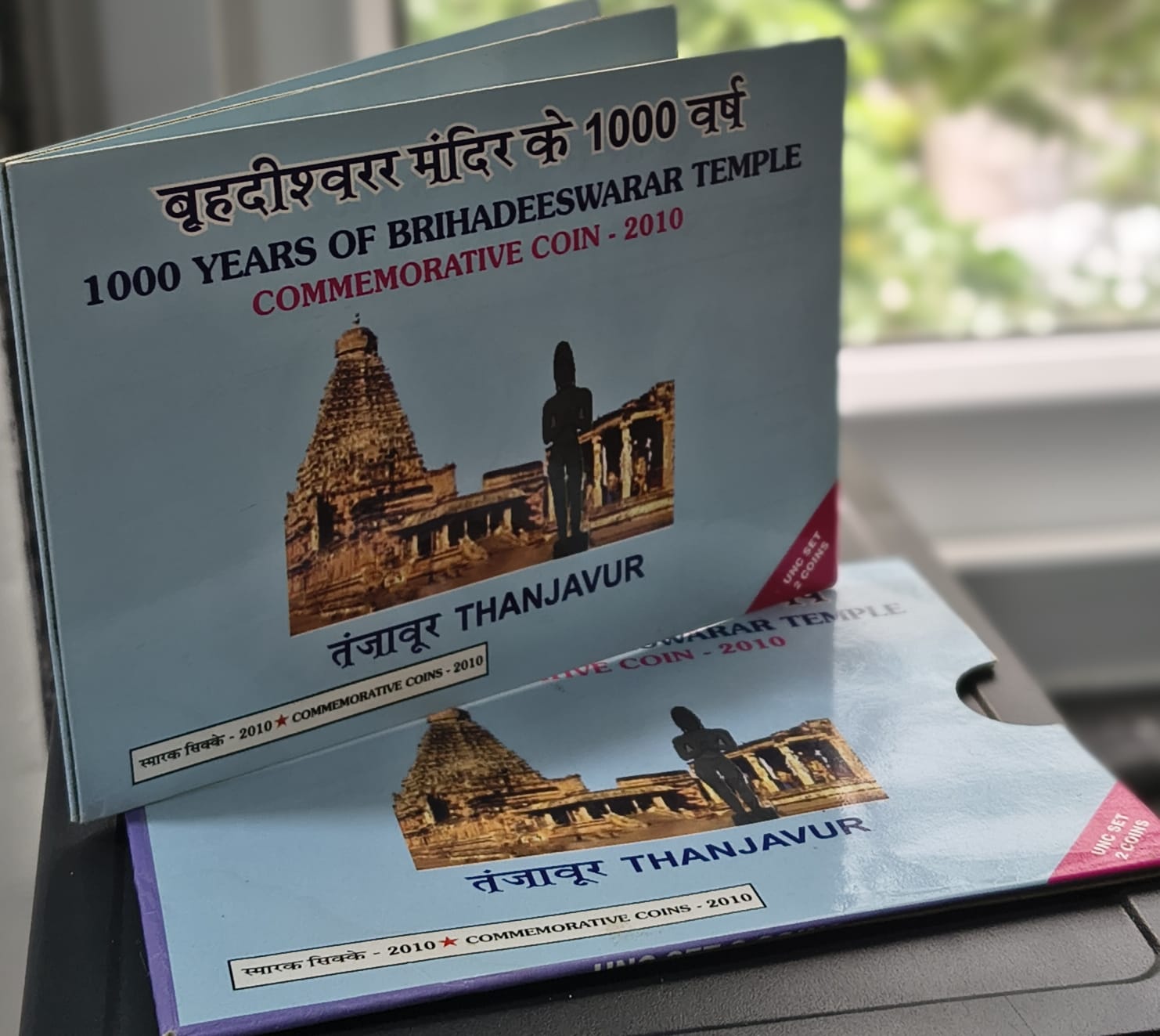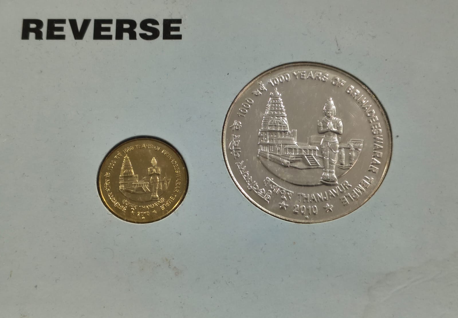 1000 YEARS OF BRIHADEESWARAR TEMPLE THANJAVUR 2010 MUMBAI MINT RARE 2 COINS ((UNC SET))