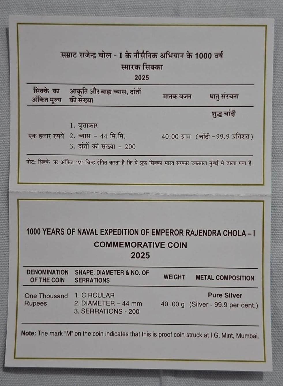 1000 years of naval expedition Rajender chola Vip set mumbai mint with certificate and box