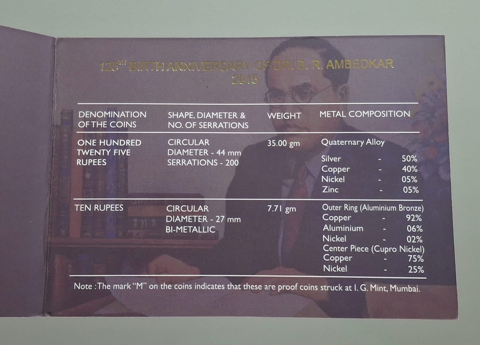 125TH BIRTH ANNIVERSARY OF B.R. AMBEDKAR 2015 RARE 2 COINS (PROOF SET) MUMBAI MINT