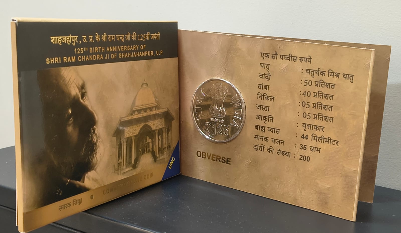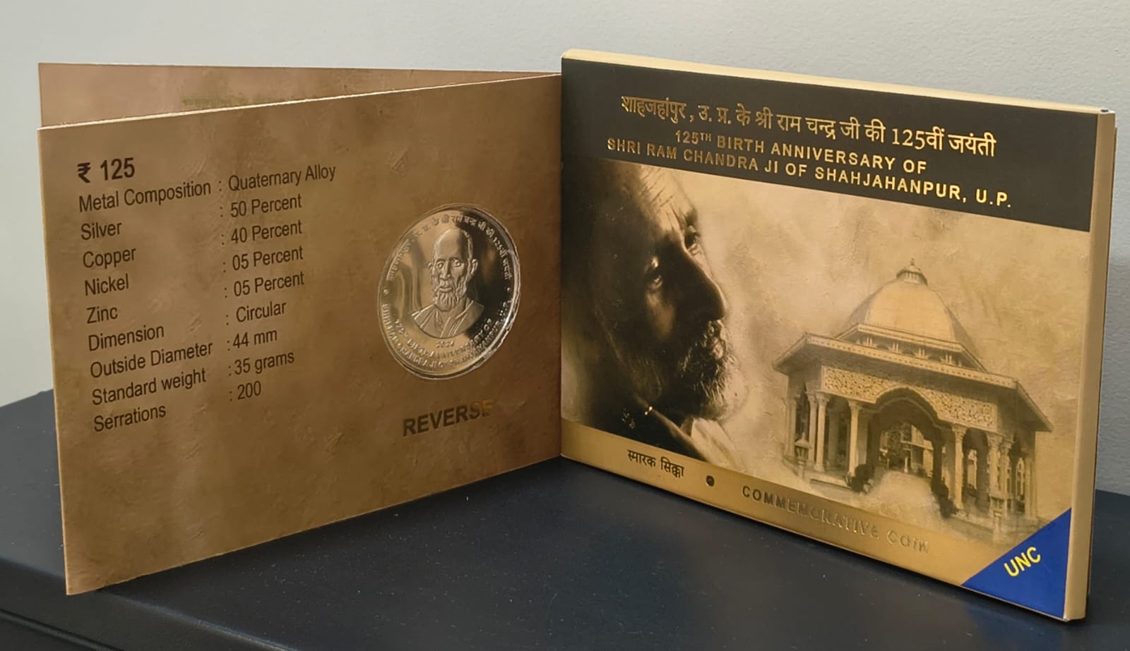 125TH BIRTH ANNIVERSARY OF SHRI RAM CHANDRA JI OF SHAHJAHANPUR KOLKATA MINT RARE 1 COIN ((UNC SET))