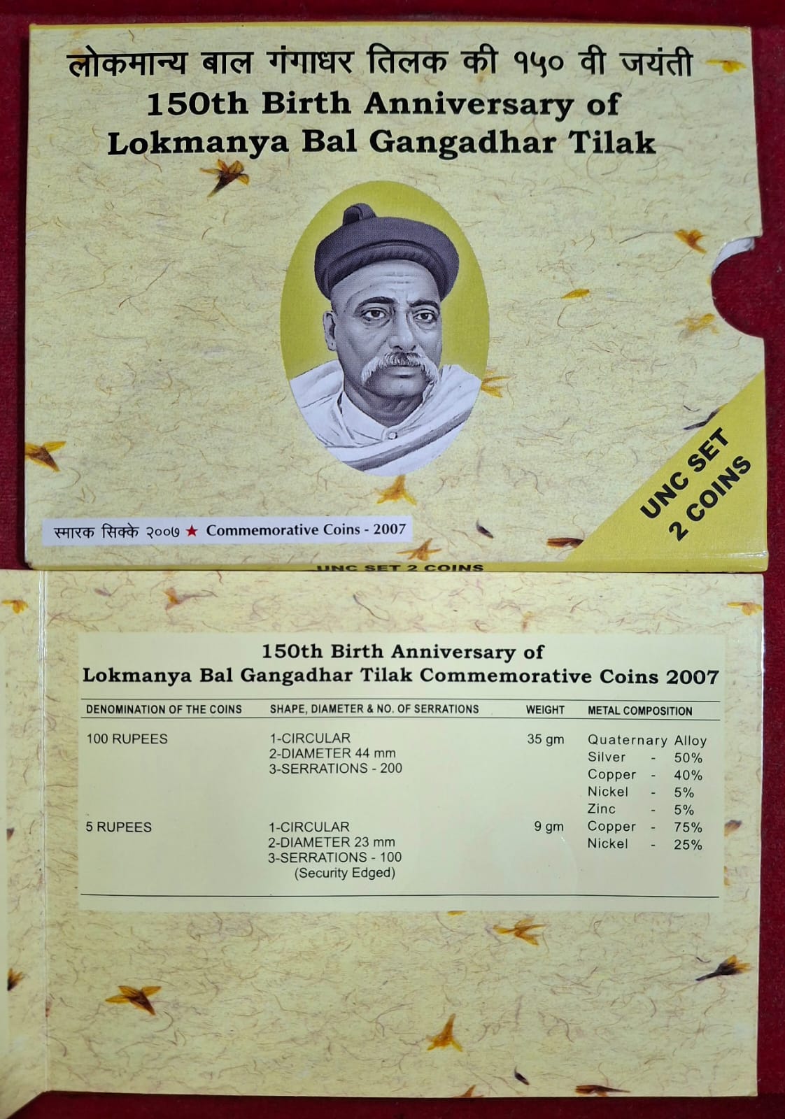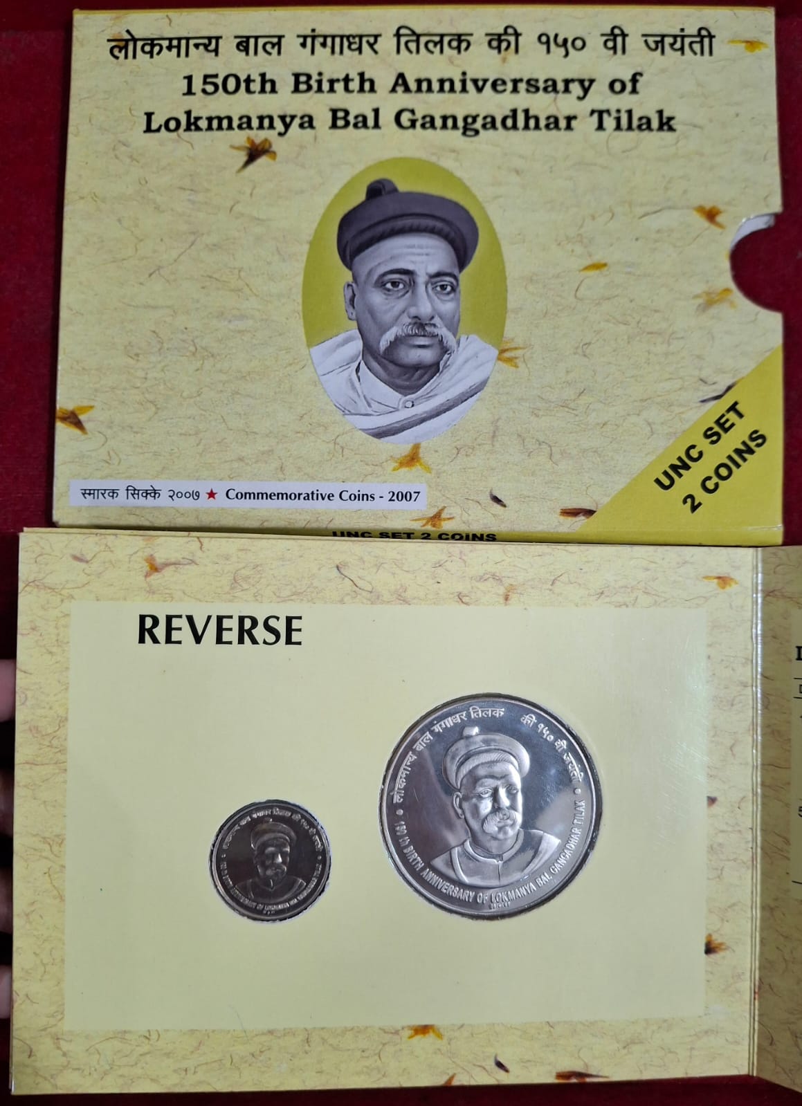 150 th Birth Anniversary of Lokmanya Bal Gangadhar Tilak ( Unc set Mumbai mint 2 coin set