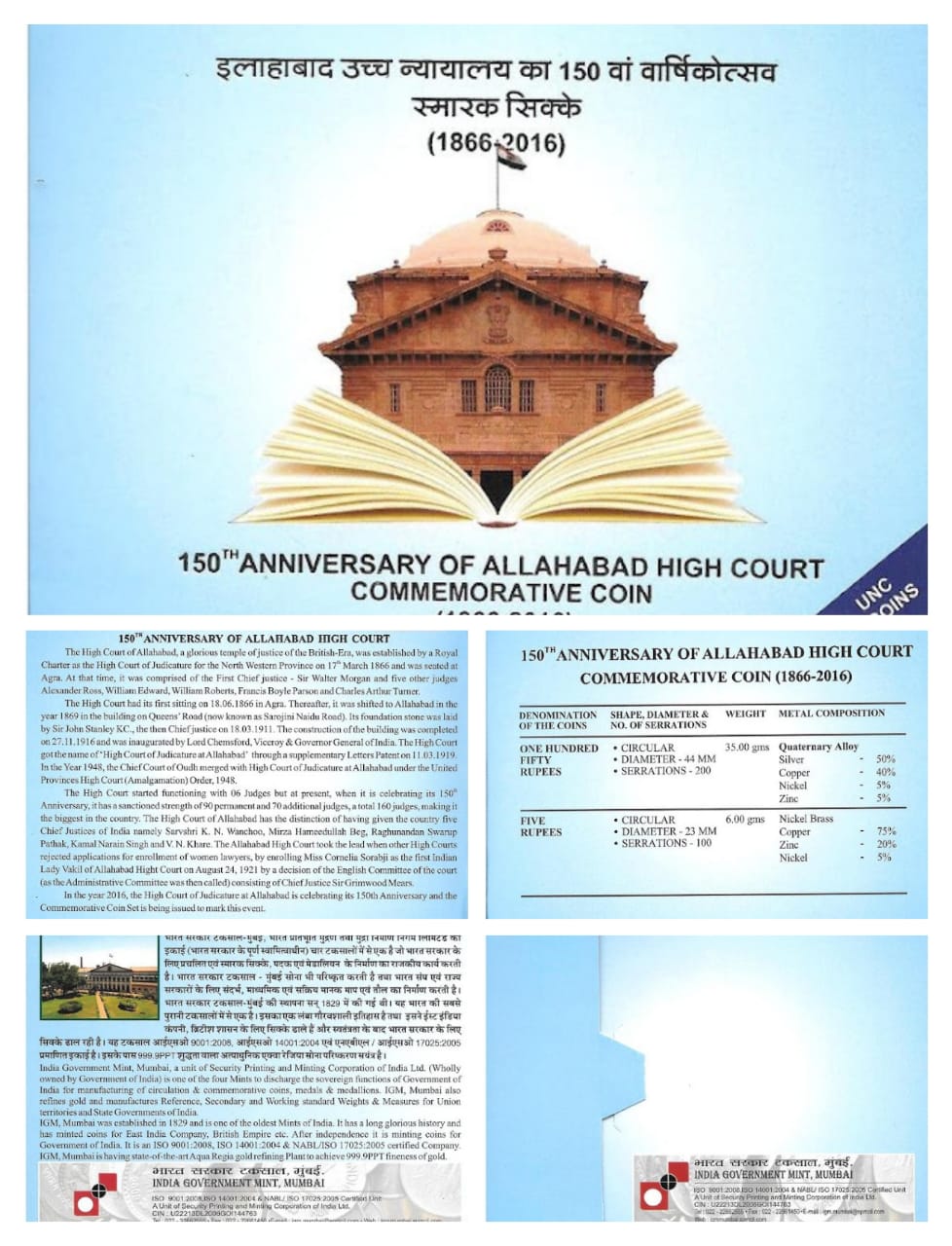 150th Anniversary of Allahabad High Court (1866-2016) Rare (2 Coin Set) Mumbai Mint UNC Set