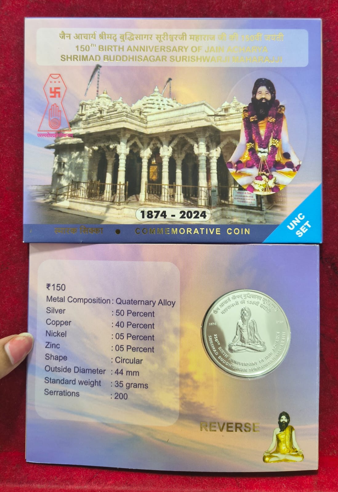 150TH BIRTH ANNIVERSARY OF JAIN ACHARYA SHRIMAD BUDDHISAGAR SURISHWARJI 2024 KOLKATA MINT RARE ( UNC SET)