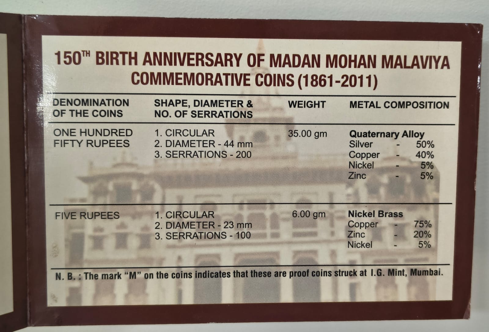 150TH BIRTH ANNIVERSARY OF MADAN MOHAN MALAVIYA 1861-2011 MUMBAI MINT RARE 2 COINS ((PROOF SET))
