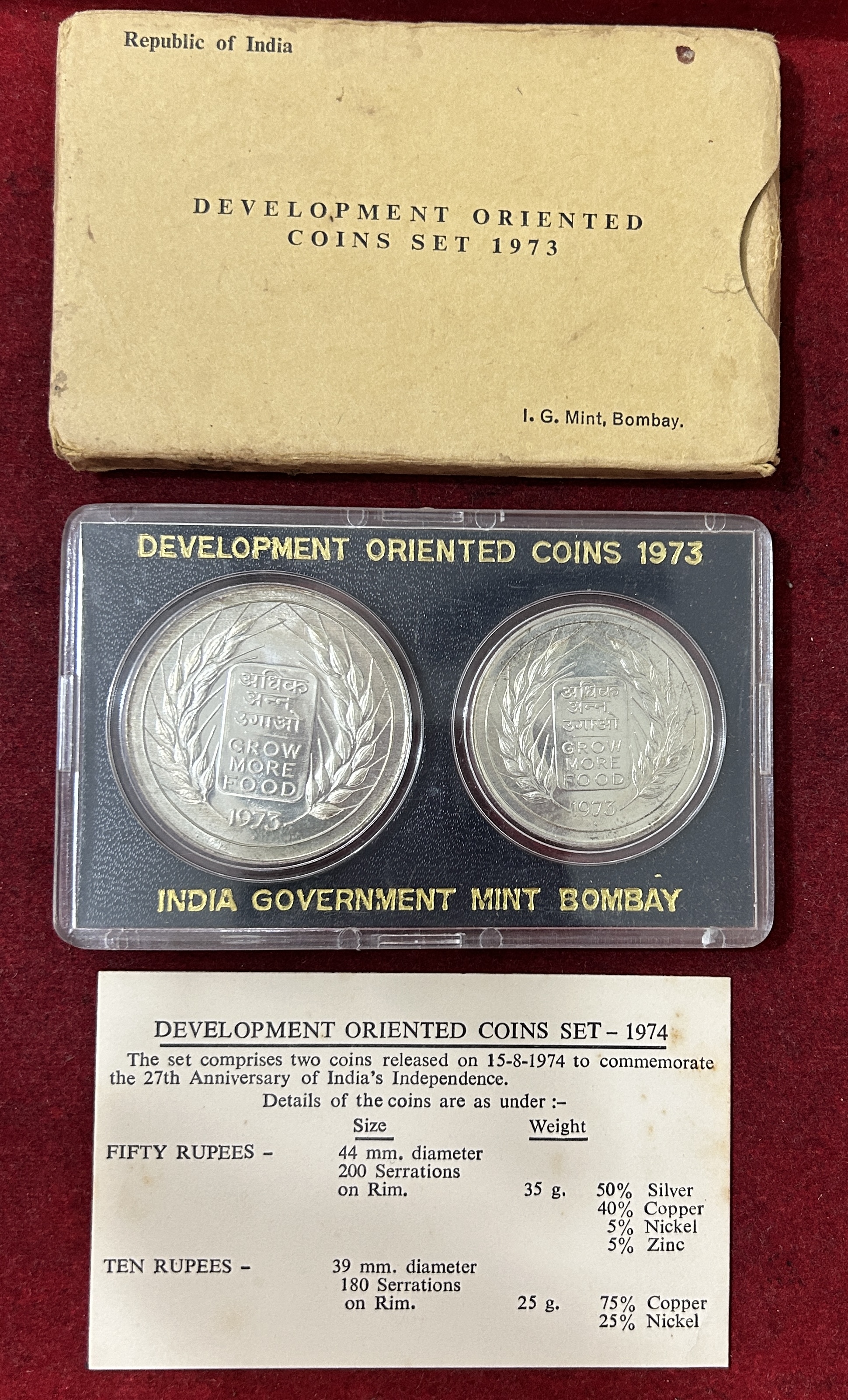 1973 Grow More Food ( 2 Coins Set) Bombay mint Rare set