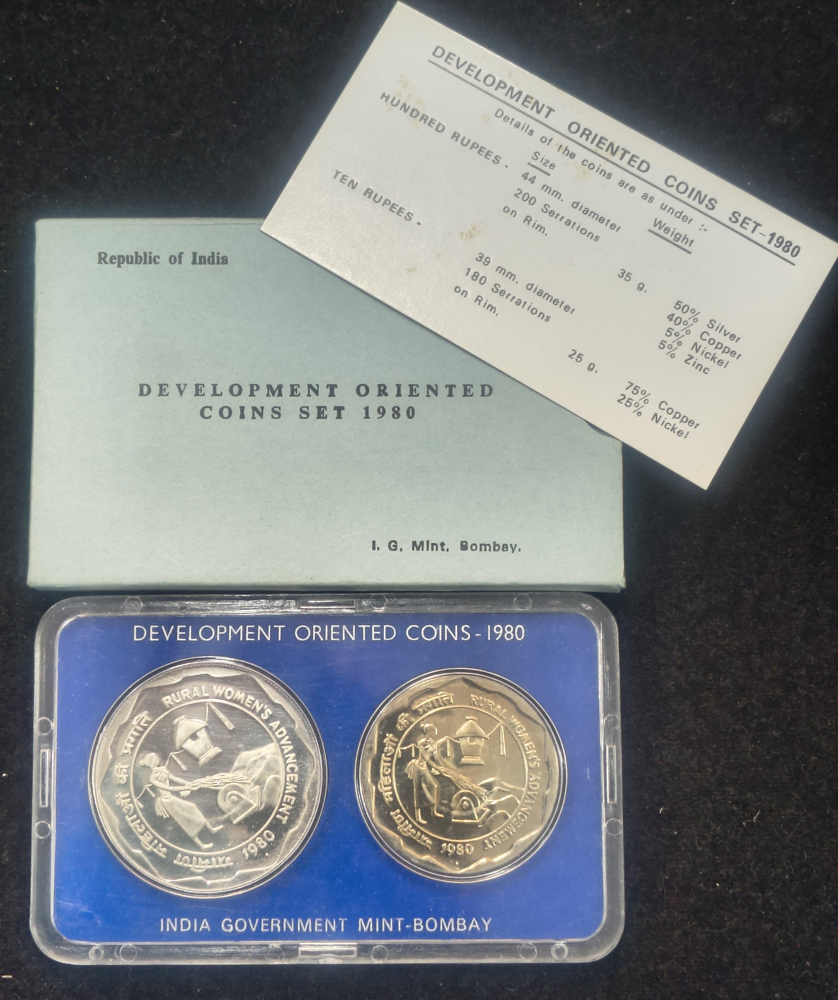 1980 Rural Woman’s Advancement ( 2 Coins Set) with box Bombay mint Rare set