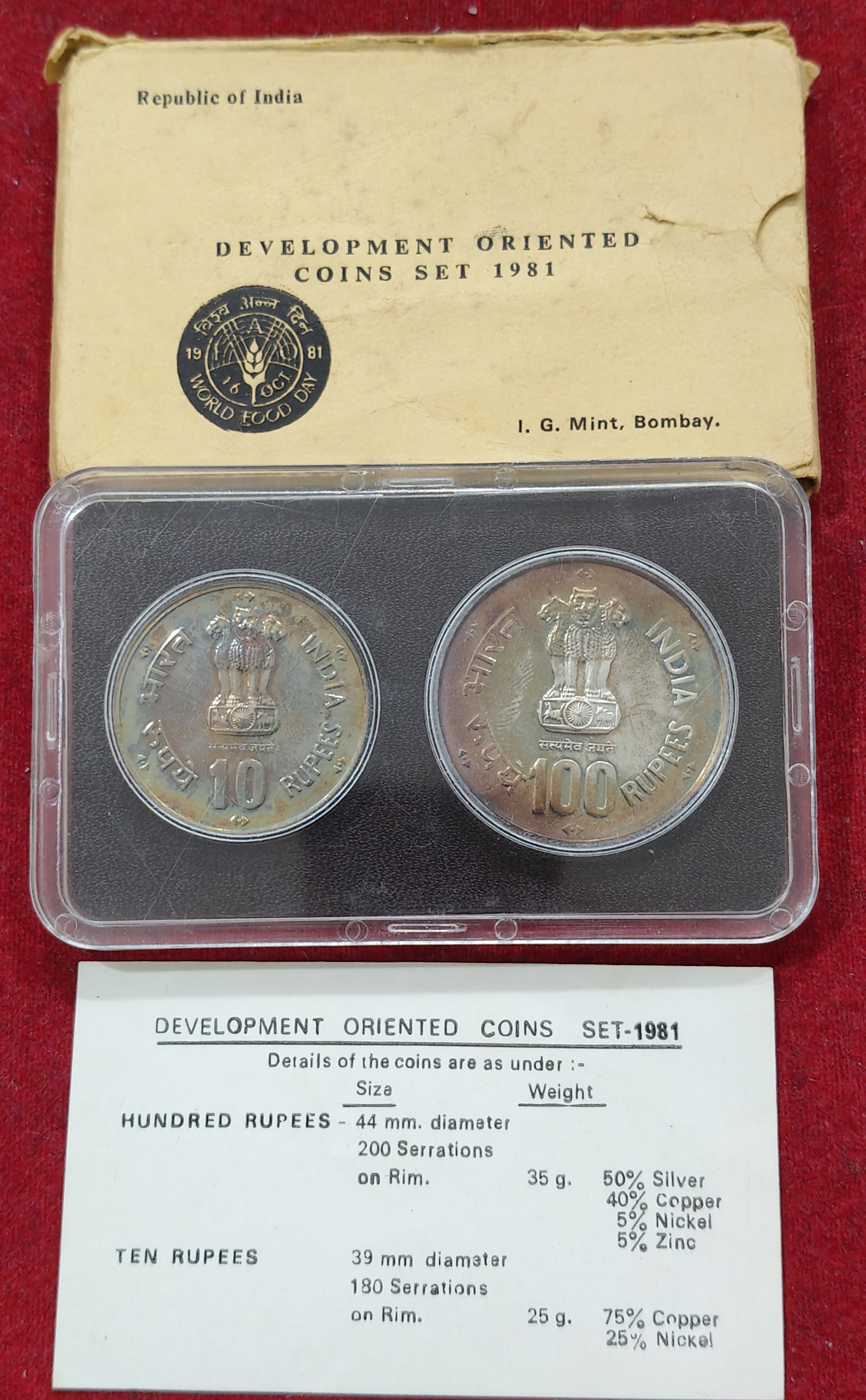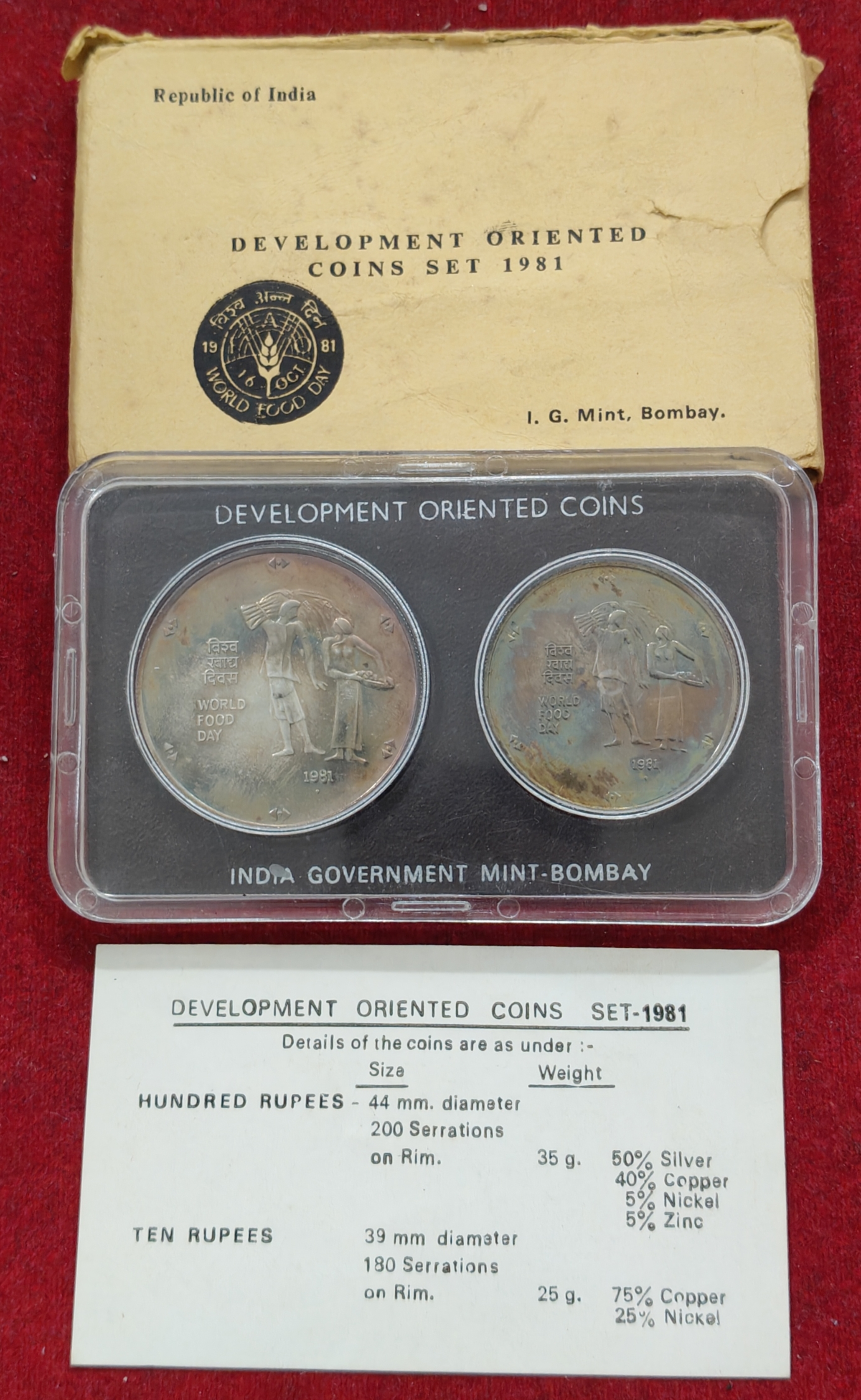 1981 world food day 2 pcs unc set Bombay mint ishu with box and certificate