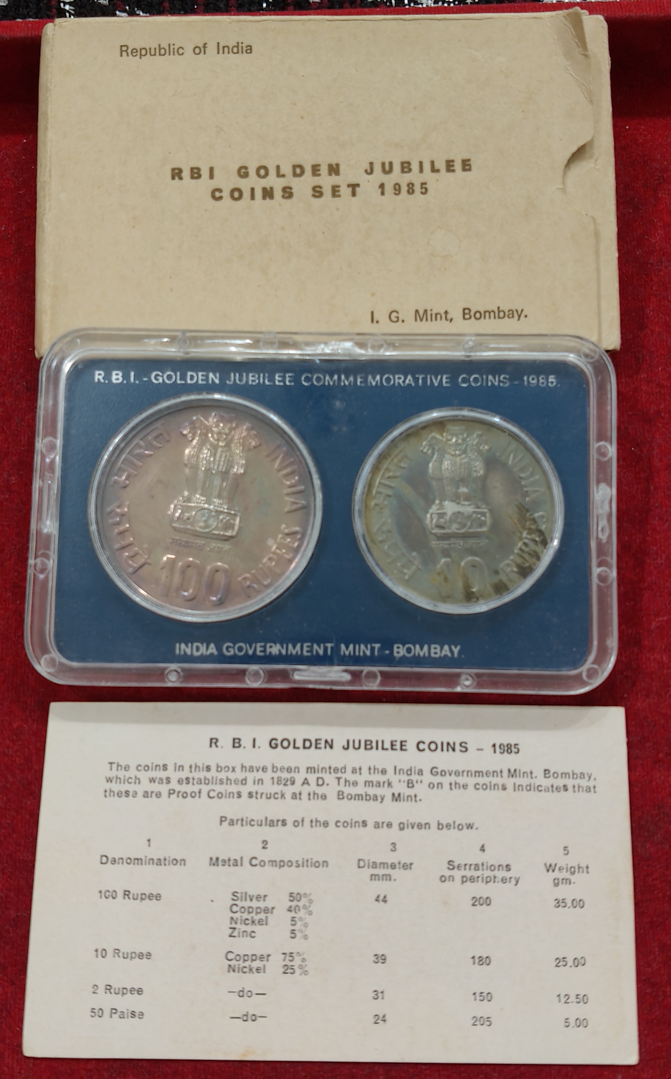 1985 Reserve Bank of India (1935-85) 2 coin set with certificate and box