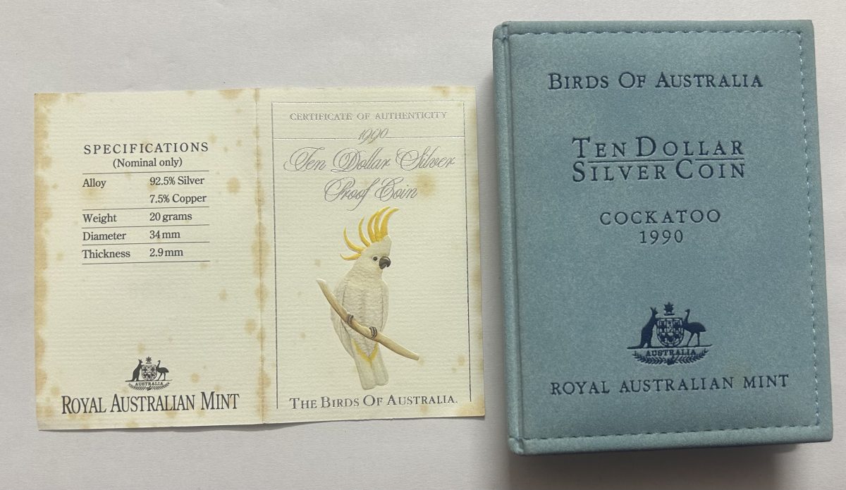 1990 Birds of Australian $10 Ten Dollar ‘Cockatoo – Silver Proof Coin 20g