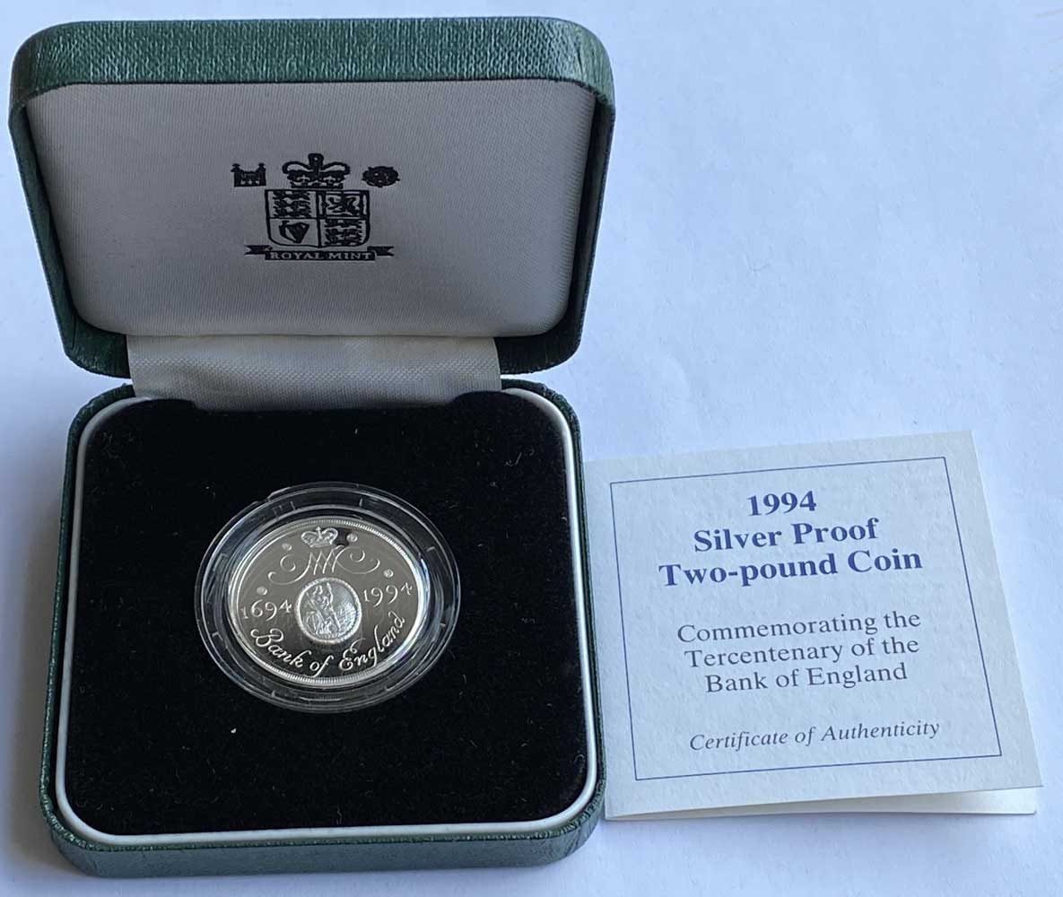 1994 United Kingdom 2 Pounds – Elizabeth II Bank of England; Silver Proof Silver (.925) Weight 15.98 g ROYAL MINT BEAUTIFUL BOX AND CERTIFICATE