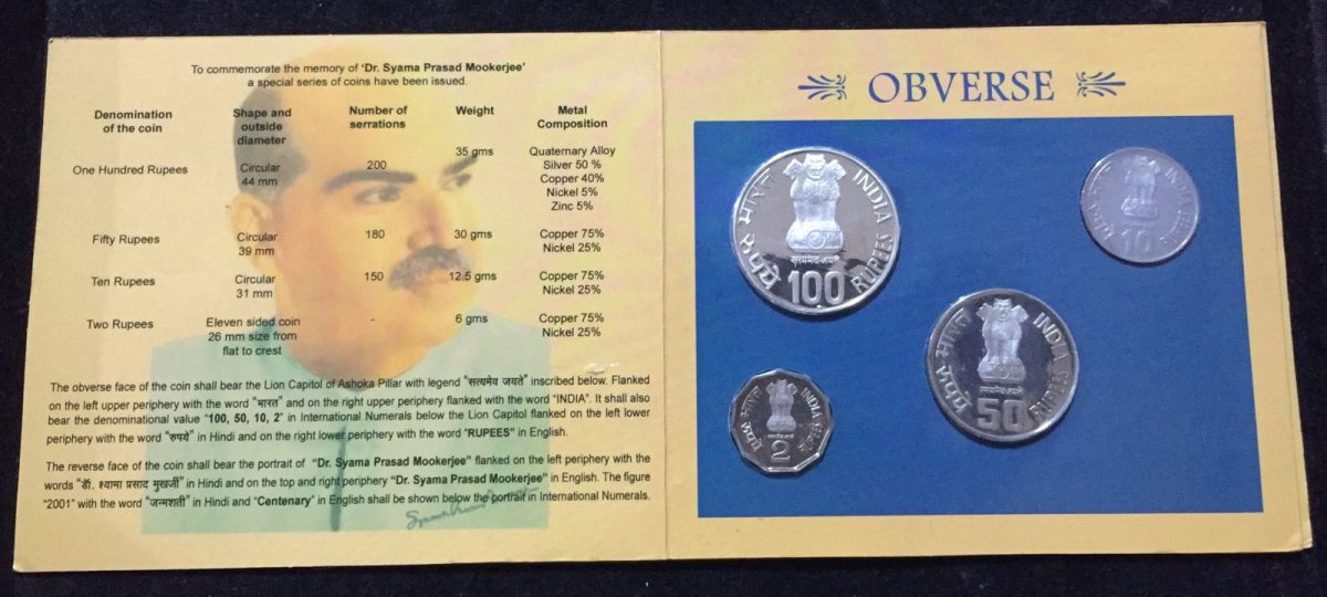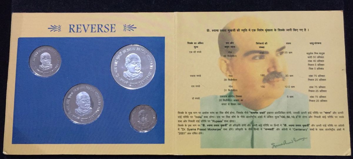 2001 Silver Proof Set Dr. Syama Prasad Mookerjee (PROOF 4 COINS SET) Kolkata Mint.