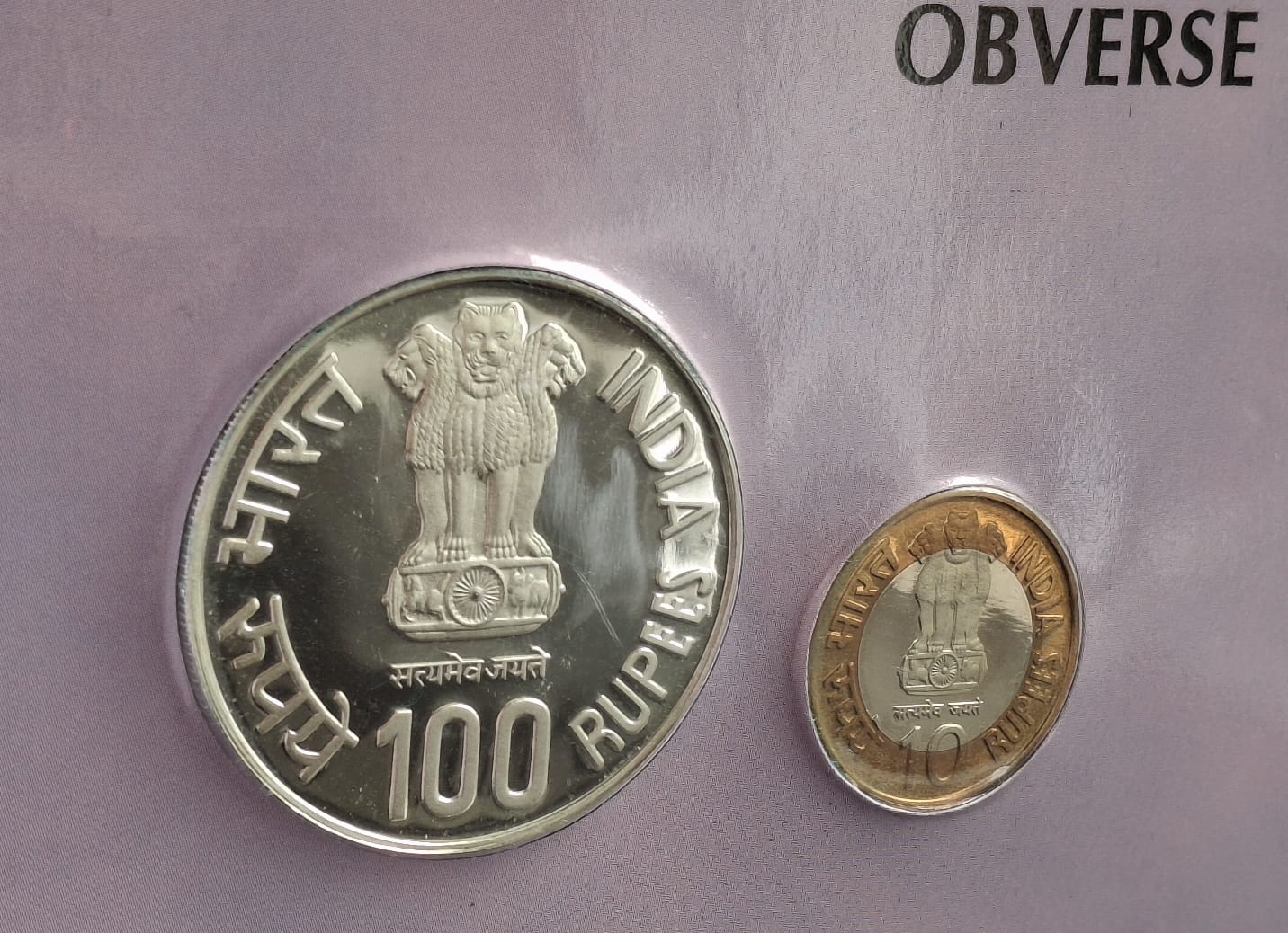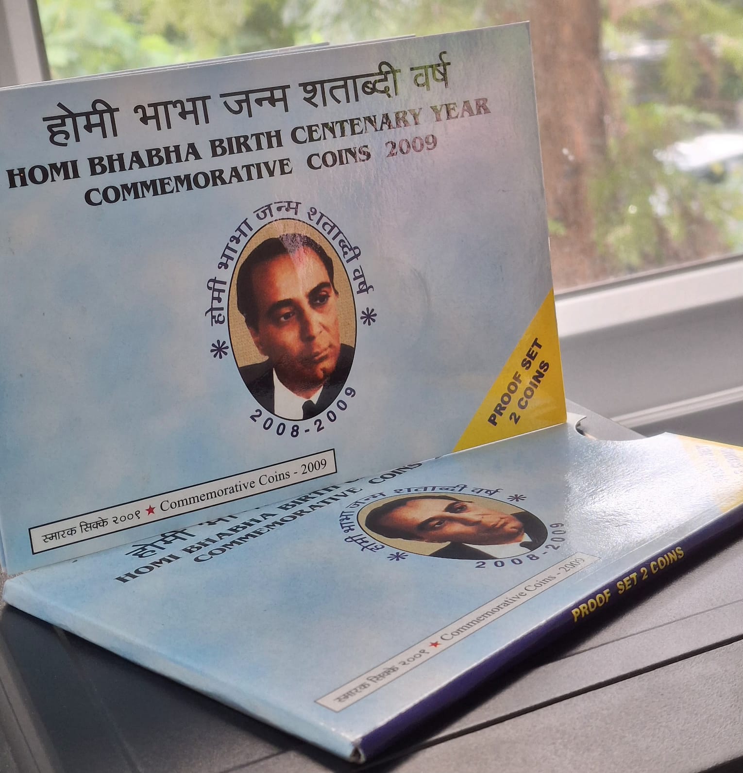 2009, Homi Bhabha Birth Centenary, PROOF set of 2 coins, 100 rupees and 10 rupees, Mumbai mint
