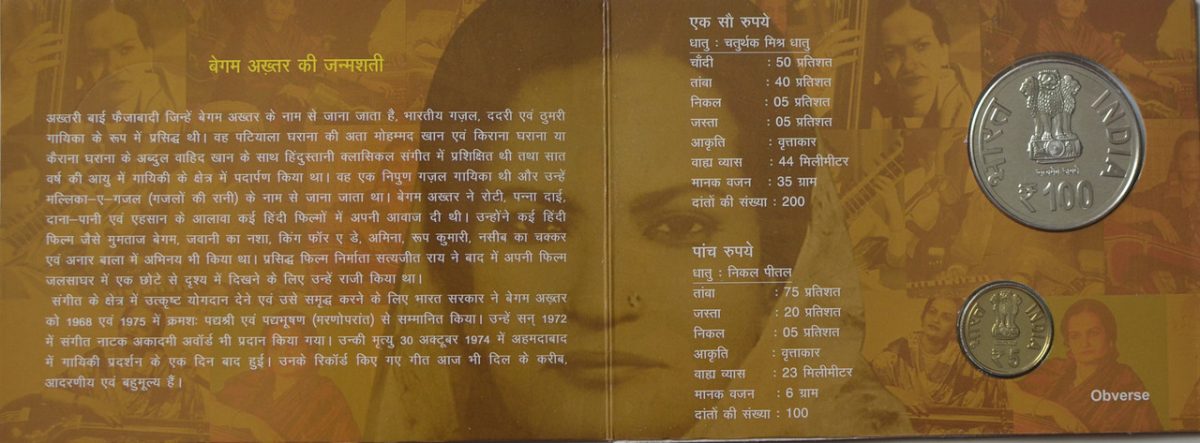 🌟 Commemorative 2013-Birth Centenary of Begum Akhtar coins