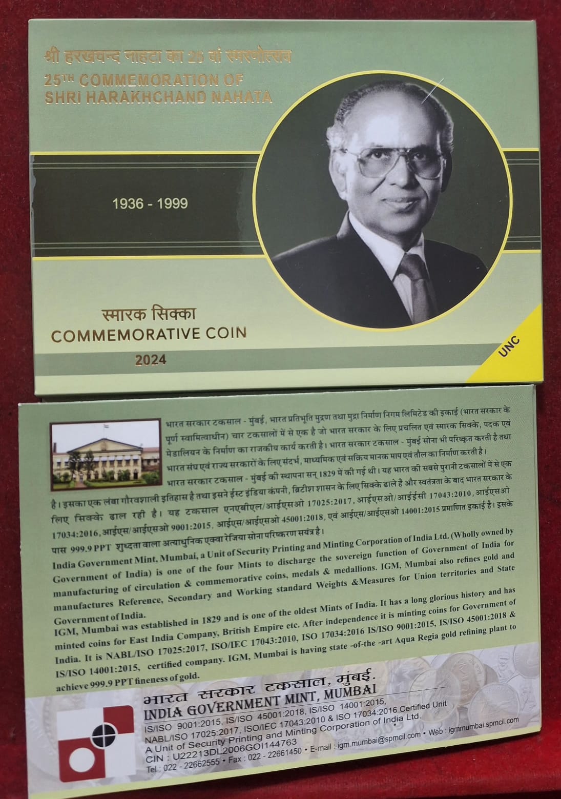 25th Commemoration of Shri Harakhchand Nahata 2024 RARE MUMBAI MINT (UNC SET)