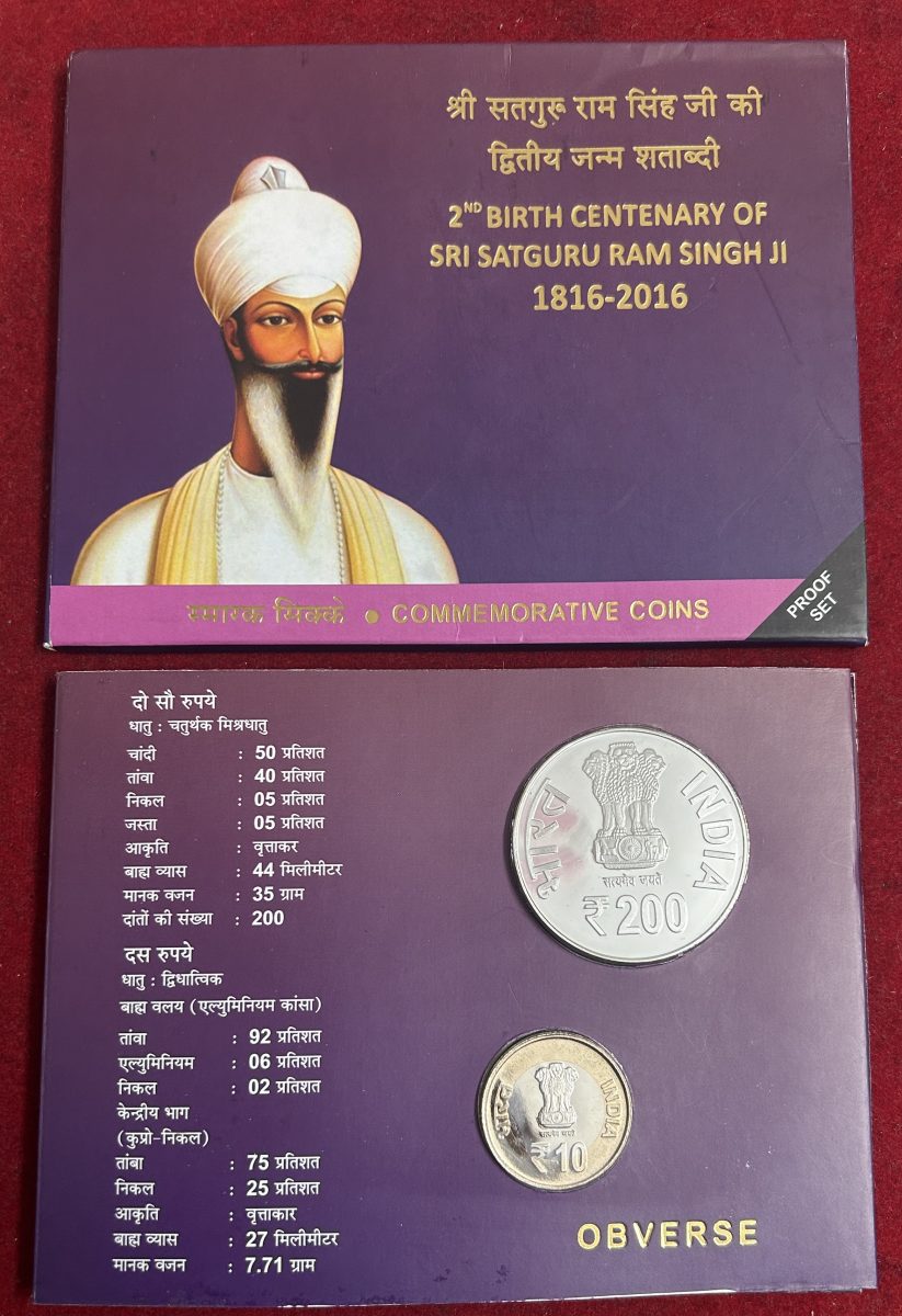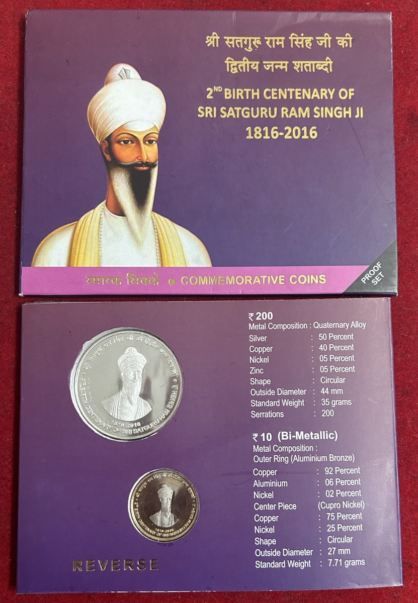 2nd Birth Centenary of Sri Satguru Ram Singh ji 1816-2016(proof set ) kolkatta mint 2 coin set
